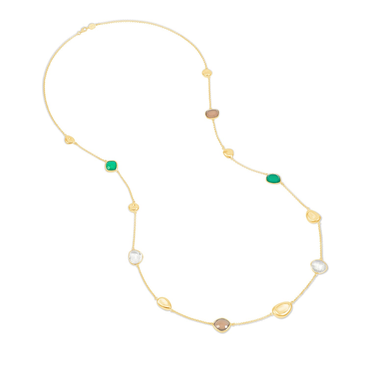 Handcrafted in sterling silver or with yellow gold vermeil finish. Gemstone/pod sizes: 10-20mm. Total length: 40 inches.