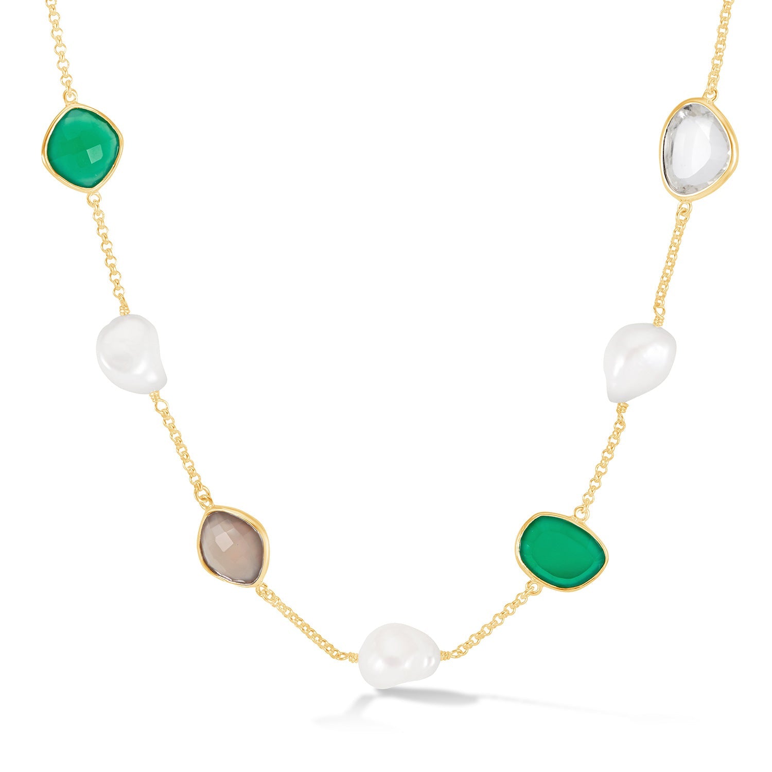 Green Gemstone & Baroque Pearl Pebble Necklace