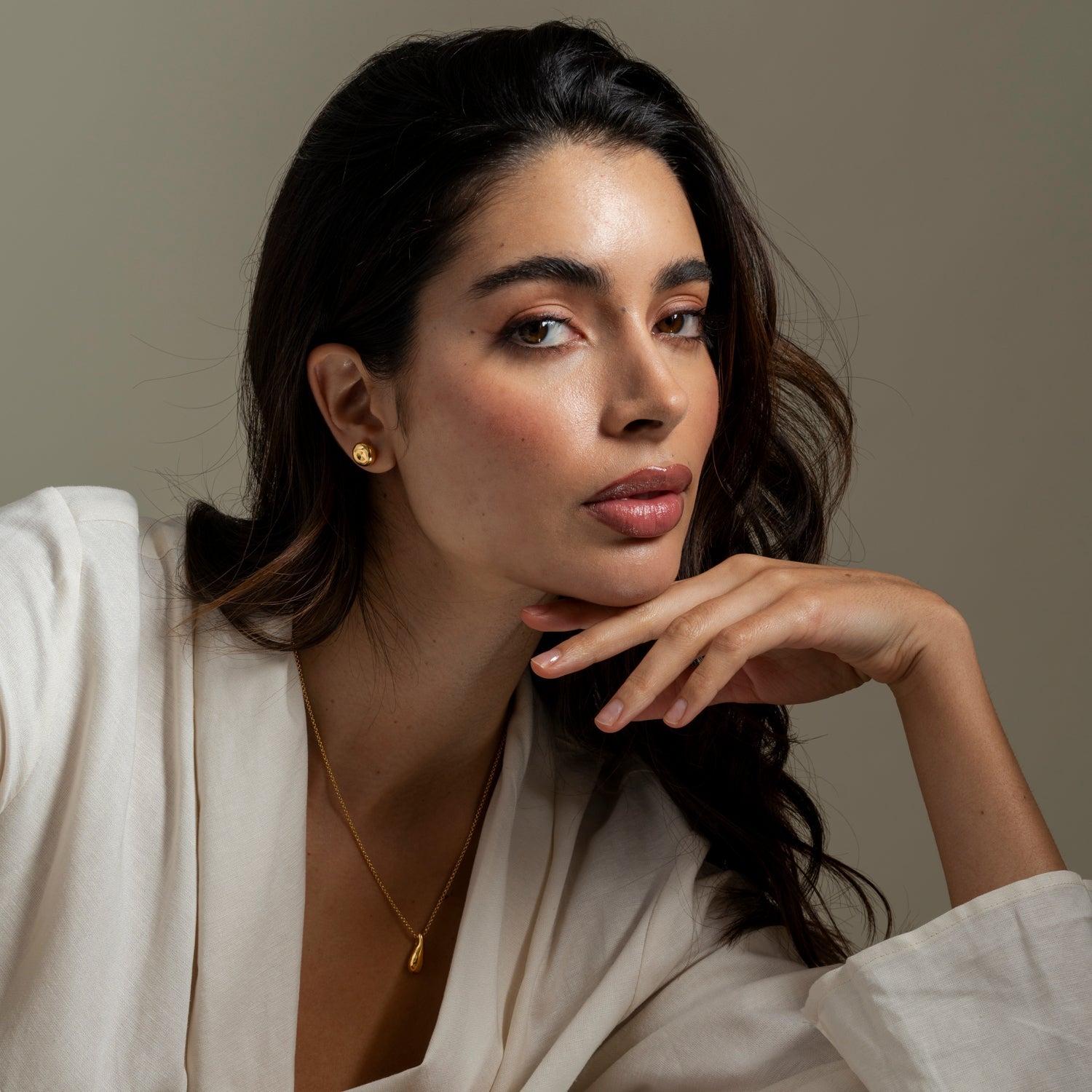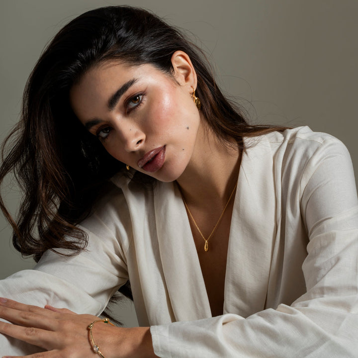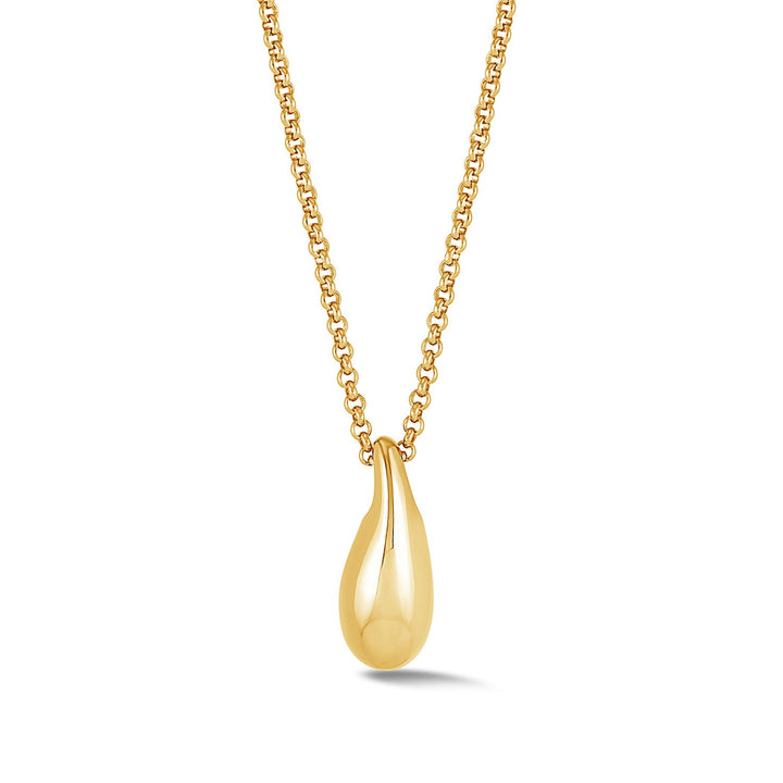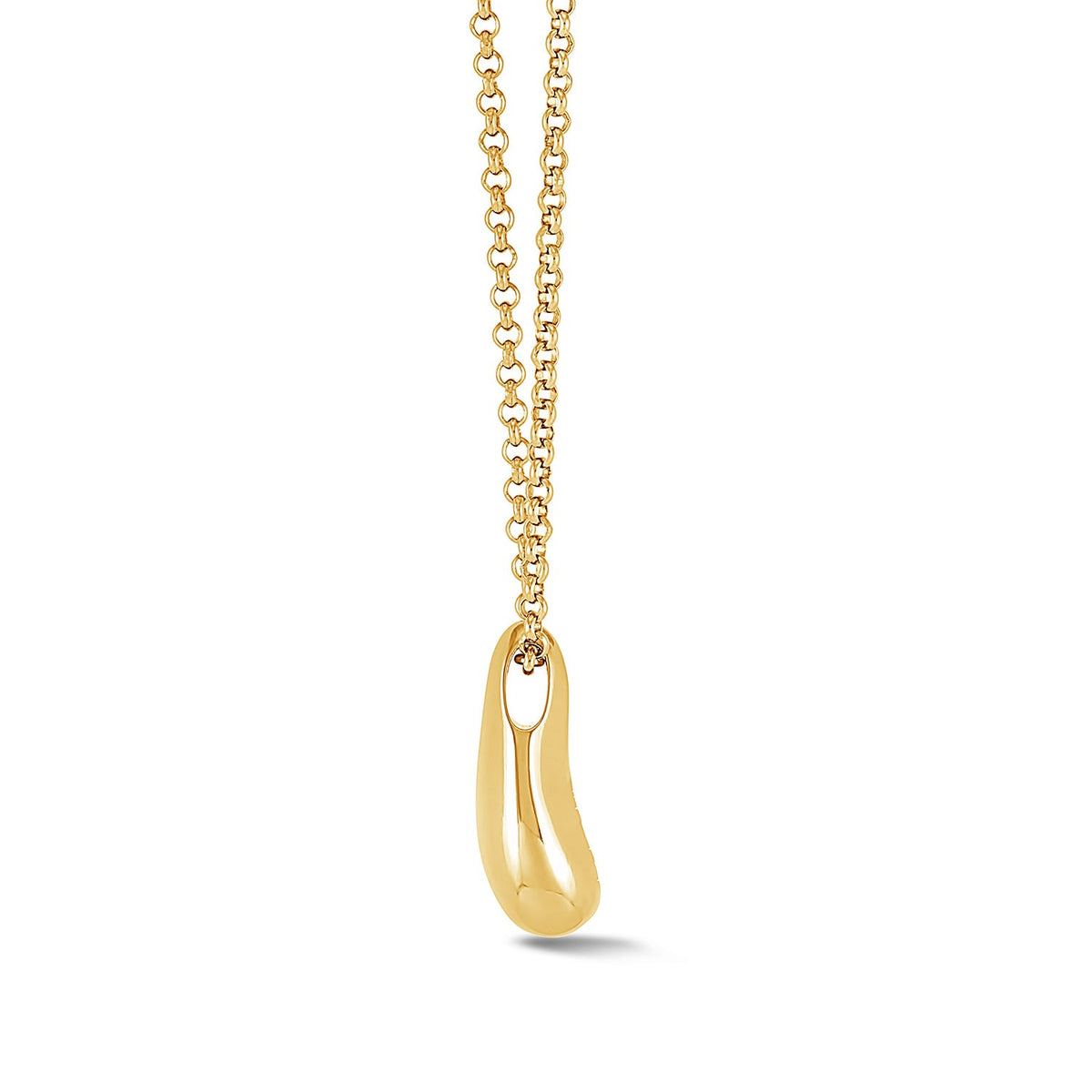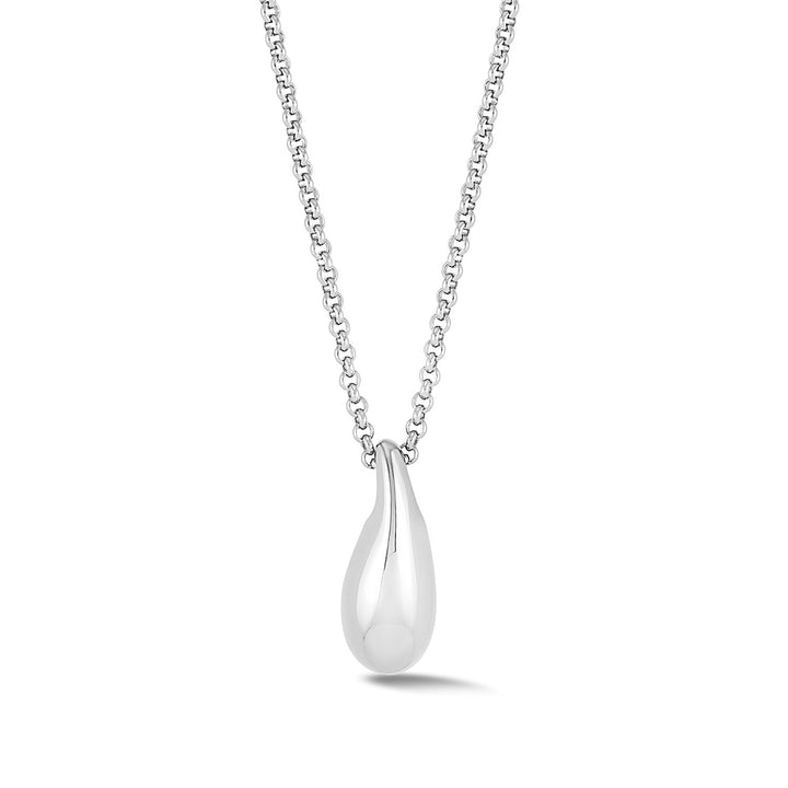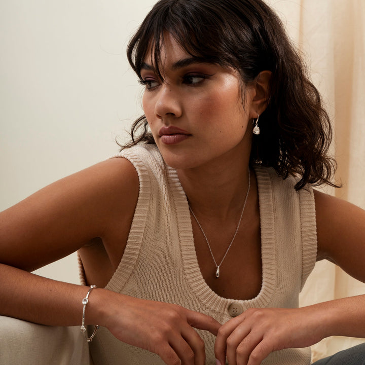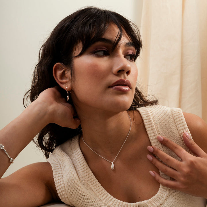 This Small Pebble Droplet Pendant by Dower & Hall offers a delicate, organic design inspired by the forms of nature. The sterling silver pendant features a tactile droplet shape and is suspended on a fine belcher chain, making it a versatile and elegant accessory for everyday wear.