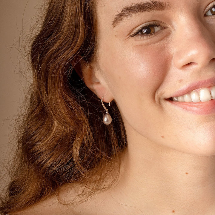 8mm Oval Dove Grey Luna Pearl Drop Earrings