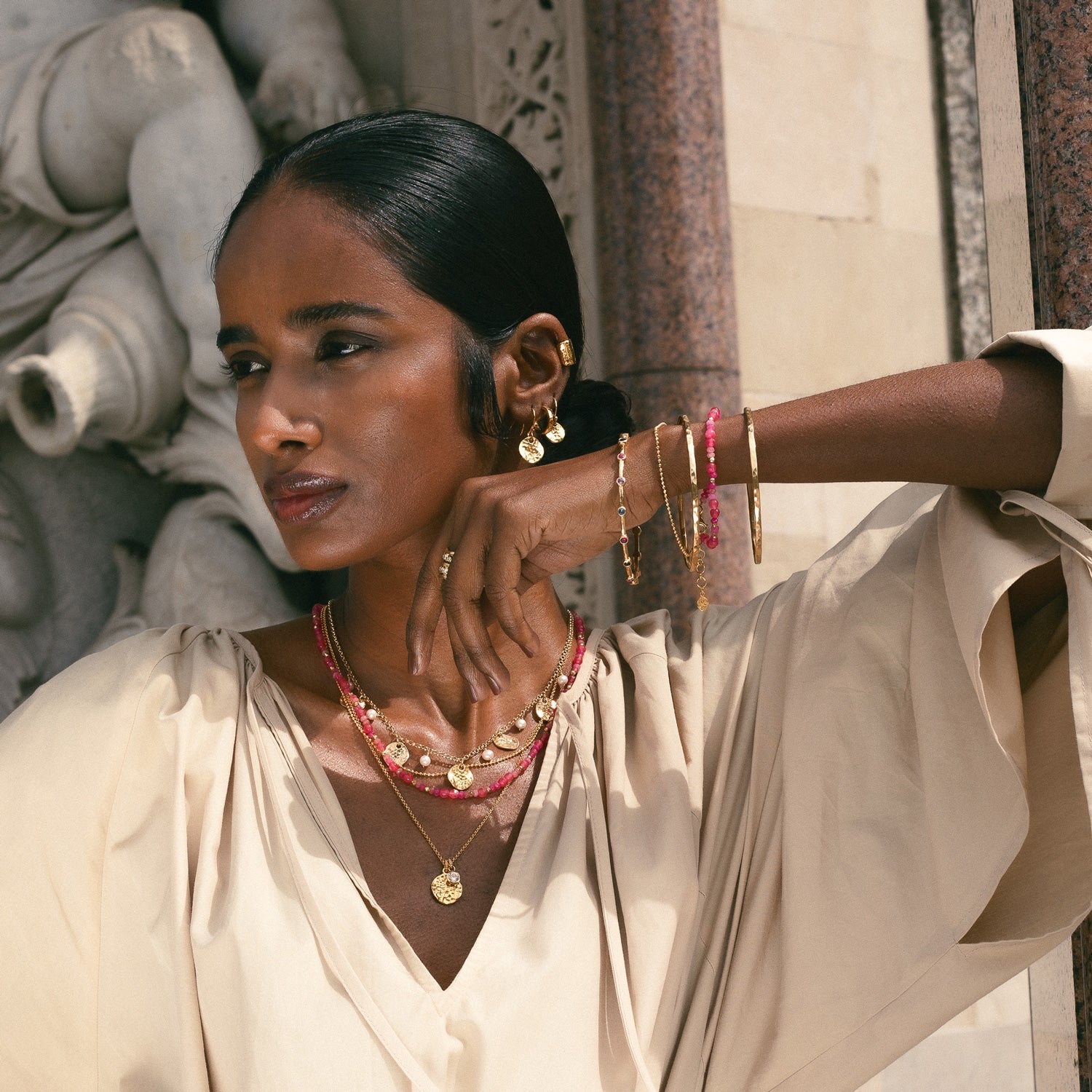 Handcrafted in sterling silver or with 18ct yellow gold vermeil finish. Pink quartz gemstone beads.