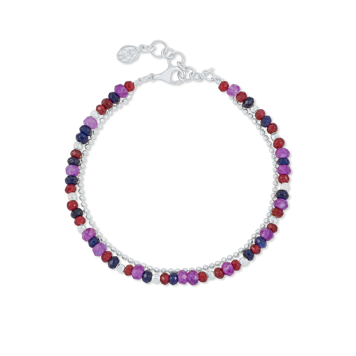 This Cassis Orissa Bracelet by Dower & Hall is a stunning mix of berry-toned gemstones, including amethyst, garnet, and dark blue agate. The colorful beads are complemented by sparkling sterling silver or yellow gold vermeil beads and chain, making this bracelet a perfect piece to wear year-round. It is adjustable between 7-8 inches for a customized fit.
