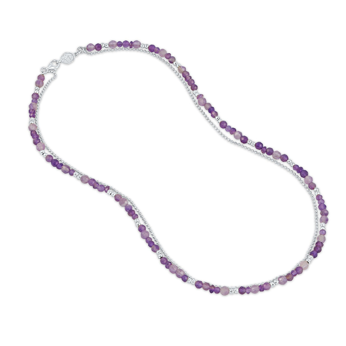 Sterling Silver with Amethyst gemstones, sterling silver beads. Necklace length: adjustable.