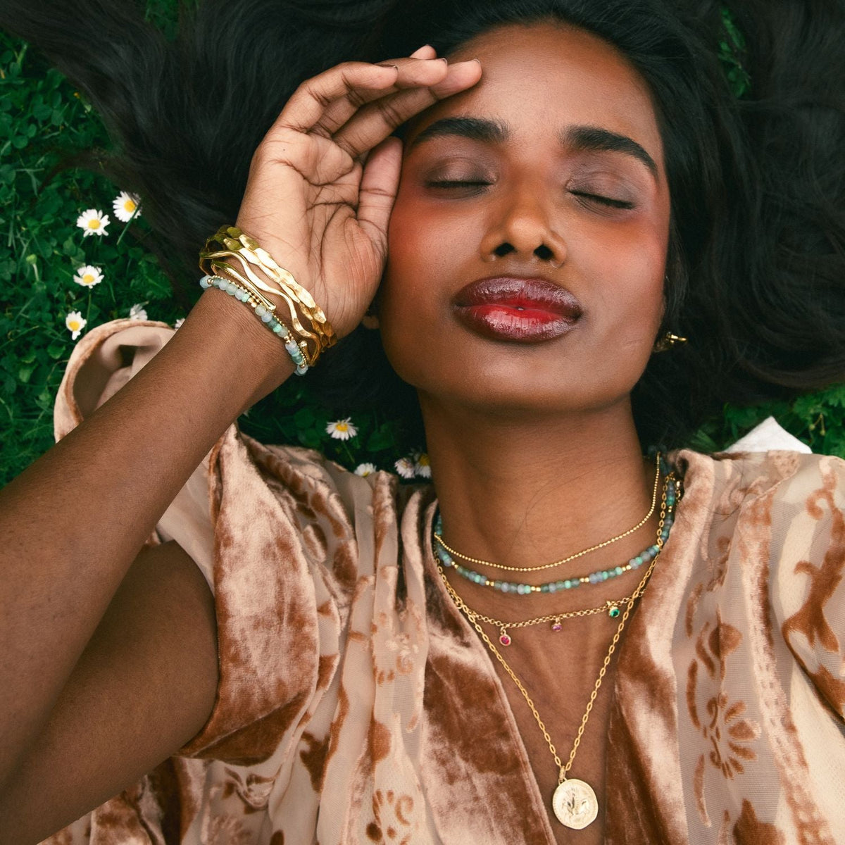 Handcrafted in sterling silver or with 18ct yellow gold vermeil finish. Amethyst, aquamarine, garnet, peridot, tourmaline, citrine, and white topaz gemstones (4mm).