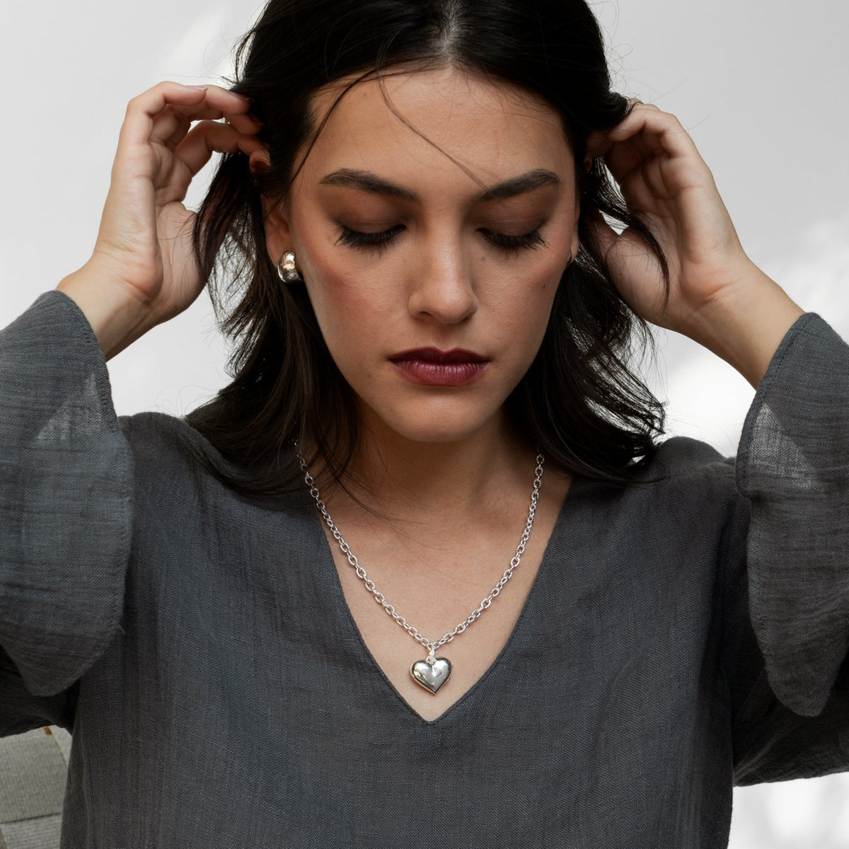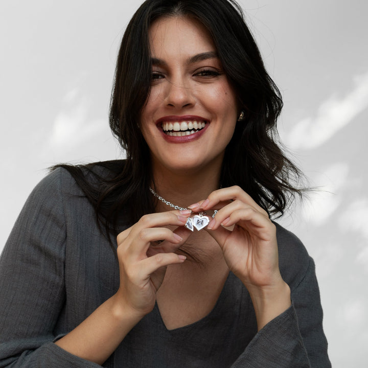 This Treasured Heart Locket Necklace by Dower & Hall celebrates precious memories. The timeless sterling silver locket is suspended on a chunky groove chain and features a secure D&H lobster catch. The locket can hold two personal photos or keepsakes, making it an ideal gift for someone special.