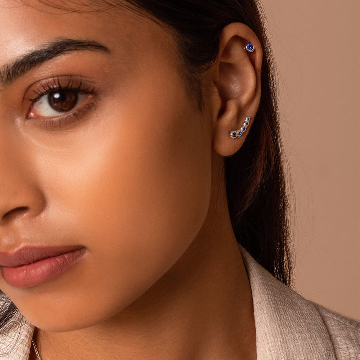 These 3mm Blue Sapphire Dewdrop Studs by Dower & Hall are a delicate and refined design, perfect for adding an everyday touch of color. Set with deep blue sapphires, these sterling silver stud earrings exude elegance and simplicity. Their small yet striking design offers timeless versatility.