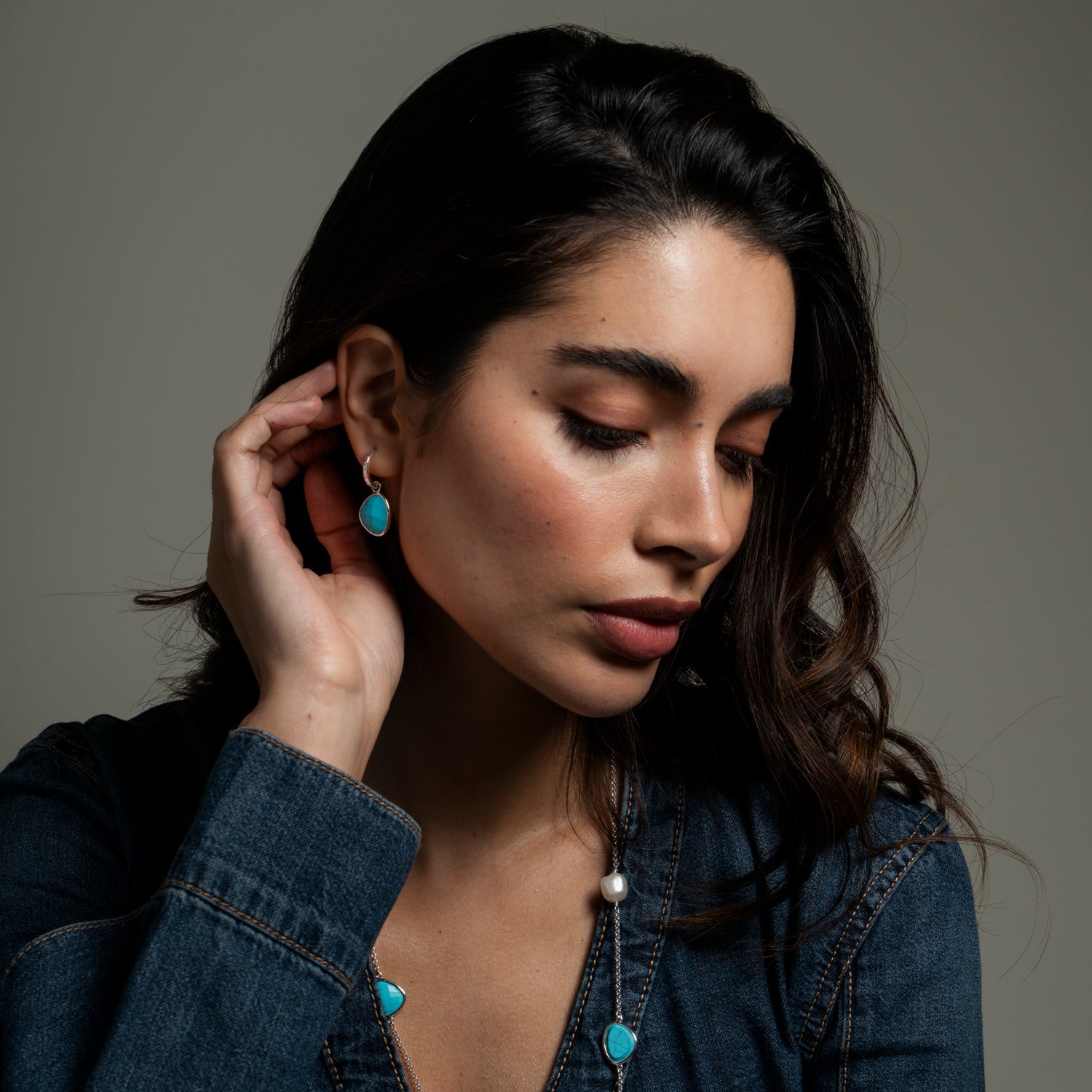 Turquoise Pebble Huggie Hoops