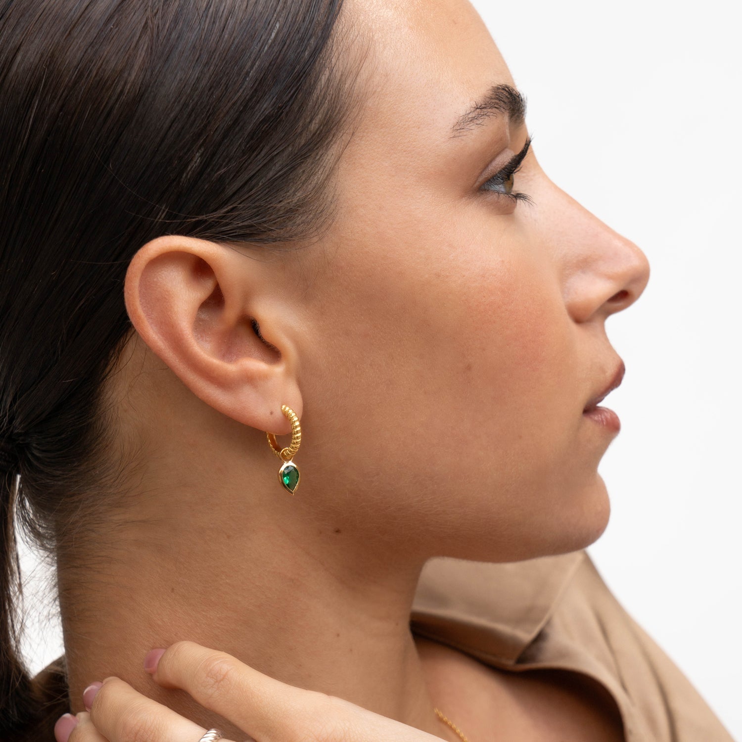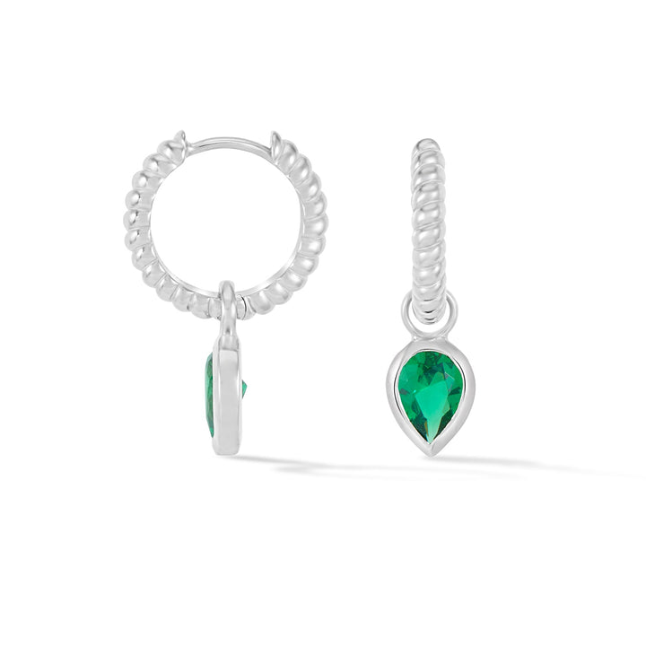 Green Garnet Twist Huggie Charm Hoops