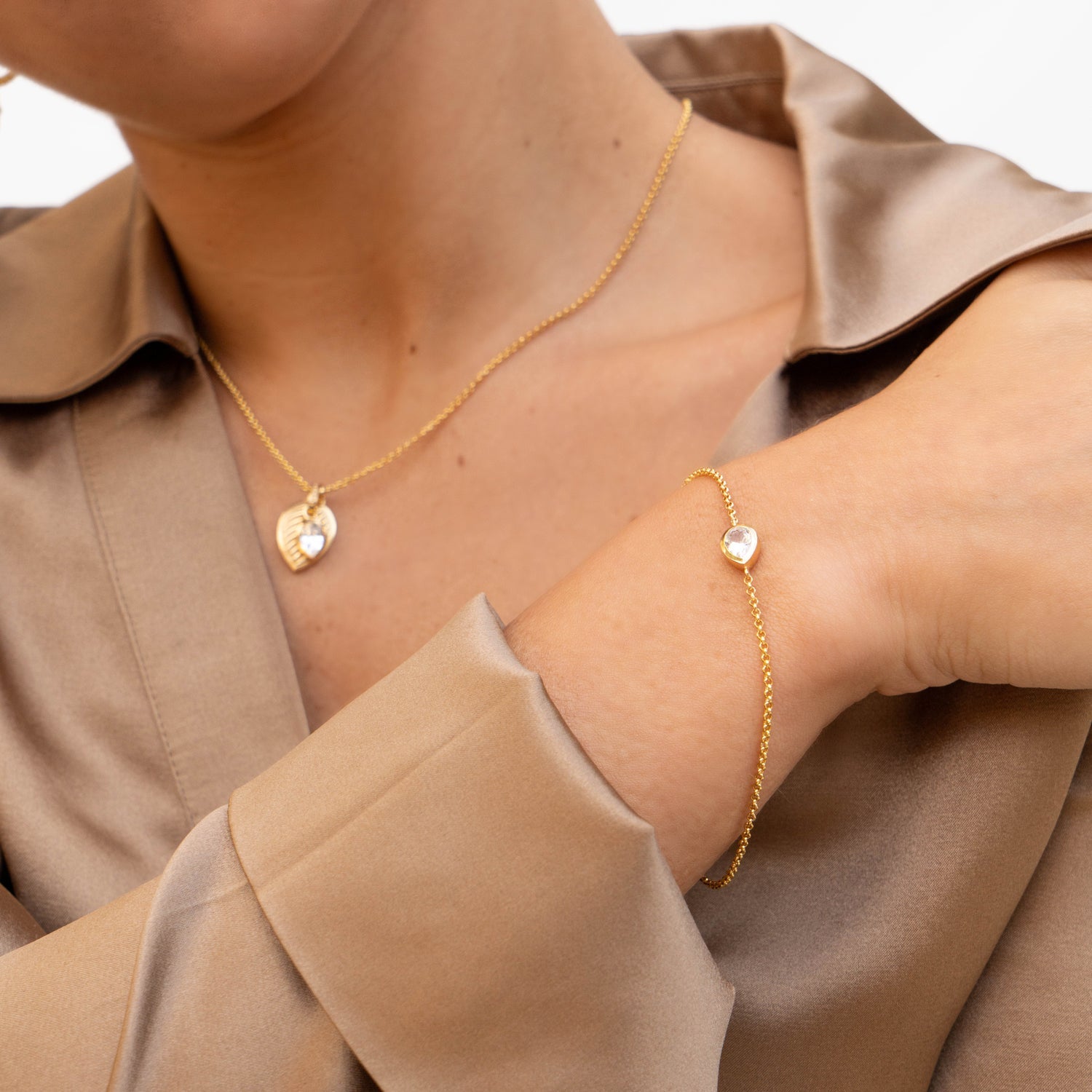 Sterling silver or 18ct yellow gold vermeil. White topaz (7 x 5mm). Adjustable length: 6.5 - 7.5 inches.