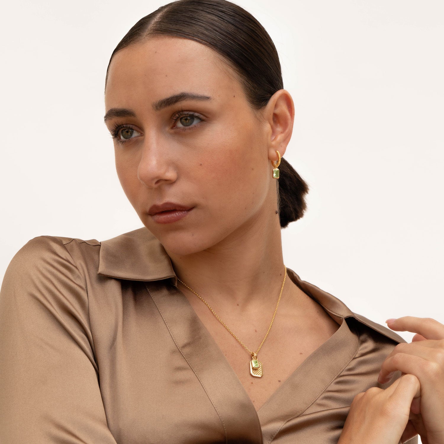 Sterling silver or 18ct yellow gold vermeil. Peridot (7 x 5mm). Pendant size: 16 x 12mm.