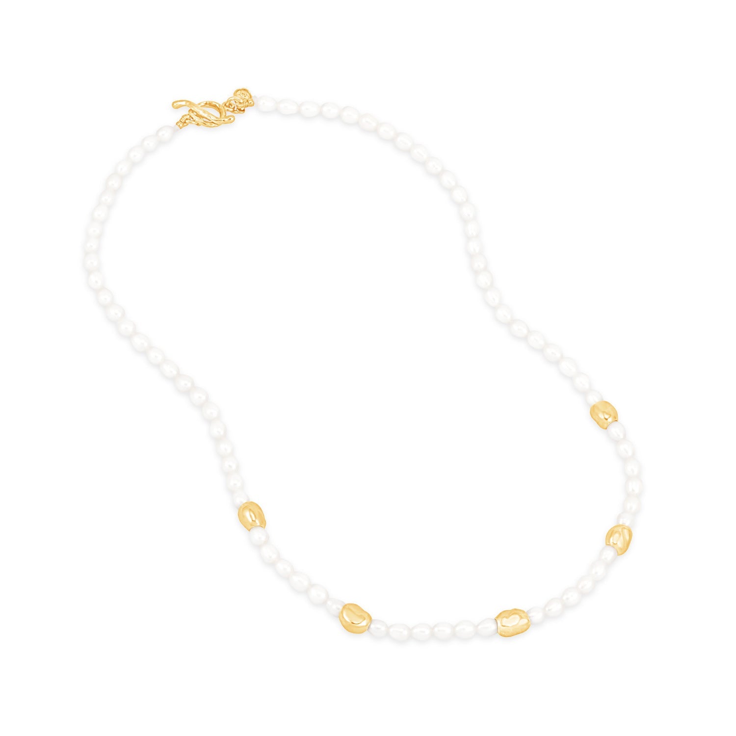 This White Pearl Ocean Pebble Necklace by Dower & Hall combines oval white freshwater pearls with irregular ocean pebble beads in sterling silver or with a luxurious 18ct yellow gold vermeil finish. Handmade in our London studio, the necklace is perfect for layering or wearing solo, and is completed with a hammered circle and t-bar catch.