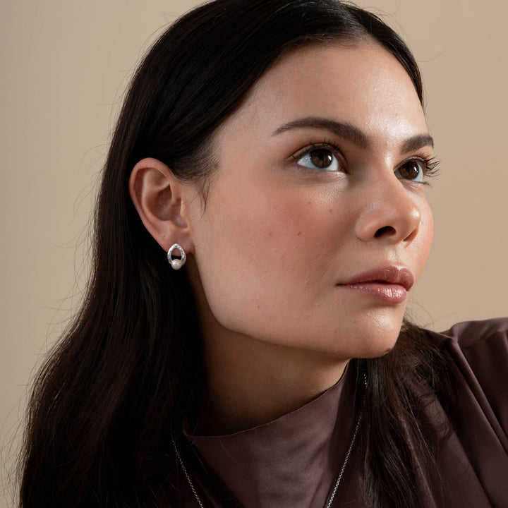 These Waterfall Pearl Droplet Studs by Dower & Hall offer a new take on classic pearls. The sterling silver oval studs feature a signature hammered finish and are adorned with 6mm white freshwater pearls. Handcrafted in the London studio, these studs bring a modern elegance to any outfit.