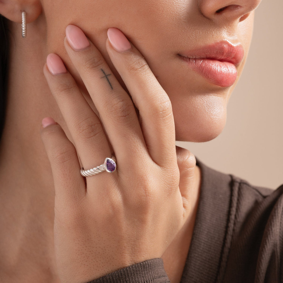 Amethyst Pear Twist Twinkle Ring
