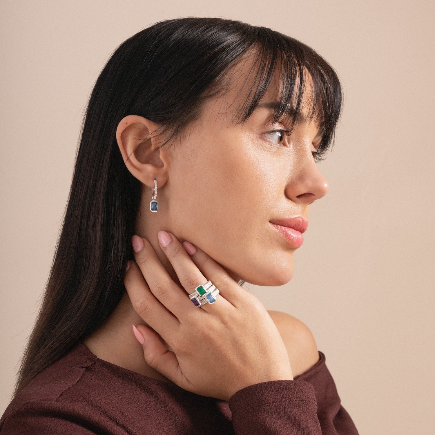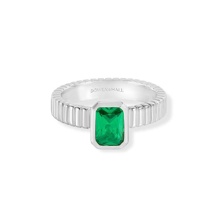 This Green Garnet Octagon Twist Twinkle Ring by Dower & Hall is a stackable sterling silver design featuring a 7 x 5mm octagon faceted green garnet. The barley sugar twist style band gives the ring a unique texture, perfect for adding a pop of color to your collection. Wear it alone for bold style or stack it with other rings for a personalized look. Available in sizes J-S, with custom sizes available on request.