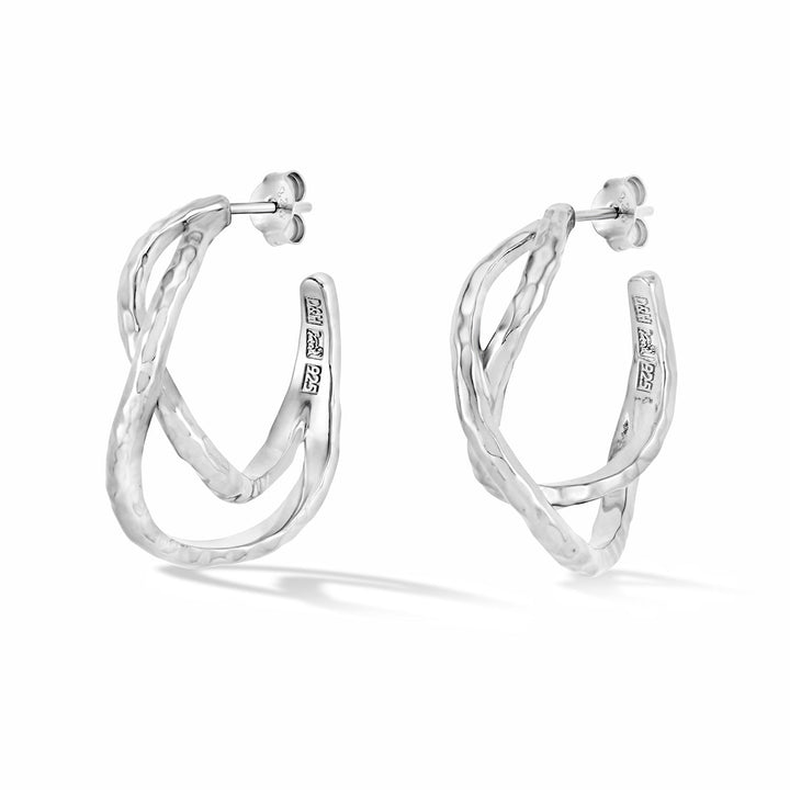 These Entwined Chunky Infinity Twist Hoops by Dower & Hall are a bold and stylish statement. Featuring the infinity symbol—a powerful sign of endless love and connection—these chunky sterling silver hoops are designed with a unique double twist. The mirror pair is finished with a signature hammered texture, adding a refined touch. These earrings can be worn solo for a dramatic look or paired with other pieces from the Entwined collection.