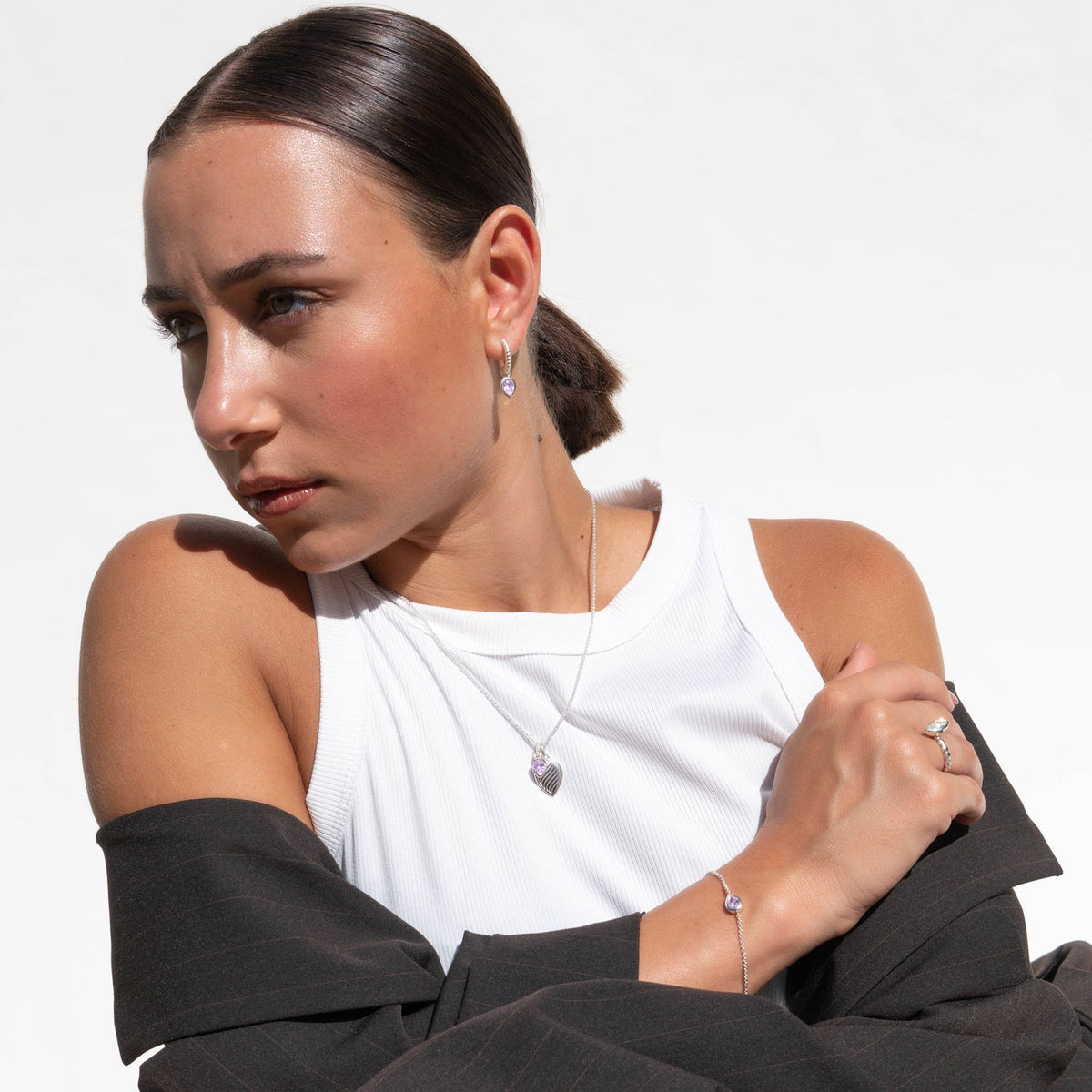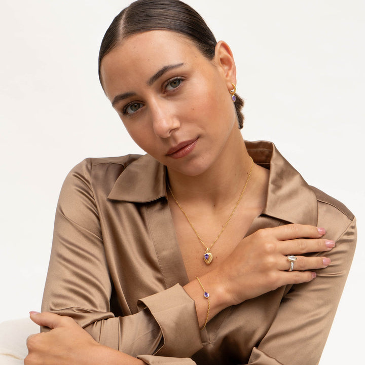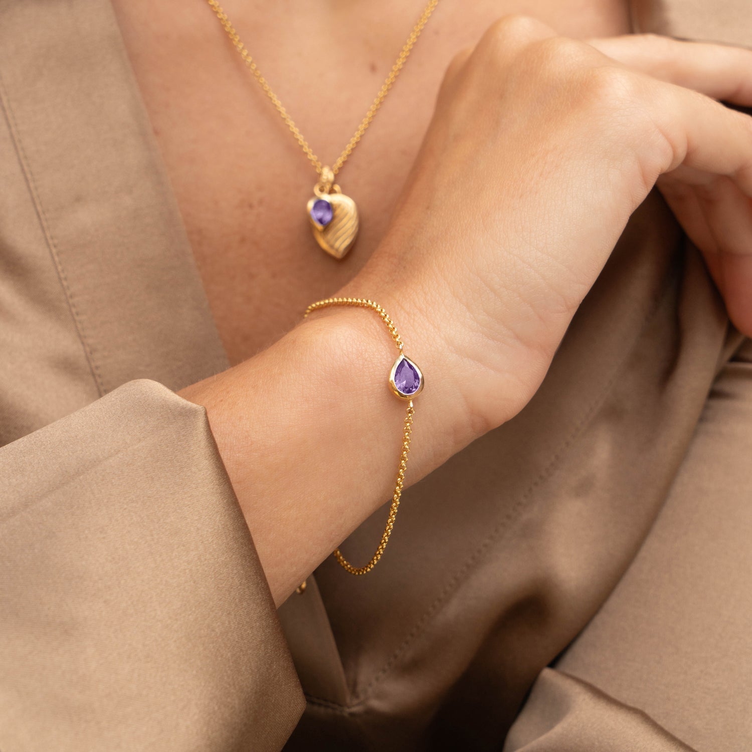 Sterling silver or 18ct yellow gold vermeil. Amethyst size: 7 x 5mm. Adjustable length: 6.5 - 7.5 inches.