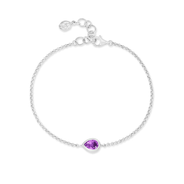 This Amethyst Pear Chain Bracelet by Dower & Hall is crafted from sterling silver and features an eye-catching pear-cut amethyst. Wear it as a standalone piece or stack it with other bracelets for a layered look. The bracelet is adjustable between 6.5 - 7.5 inches, making it perfect for everyone. Available in sterling silver or yellow gold vermeil.
