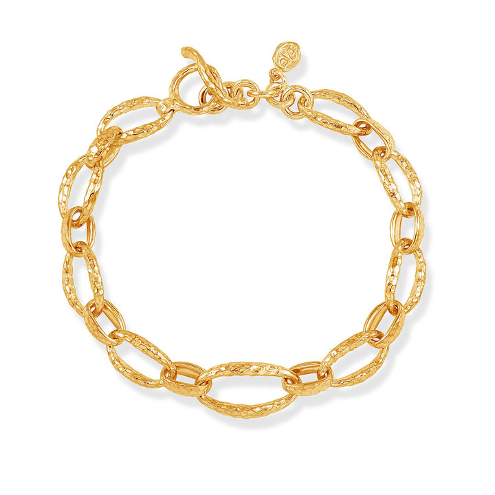 Handmade in sterling silver or 18ct yellow gold vermeil. Featuring hammered oval links with the largest central link measuring 1.5cm x 1cm. Total length - 19cm/7.5 inches.