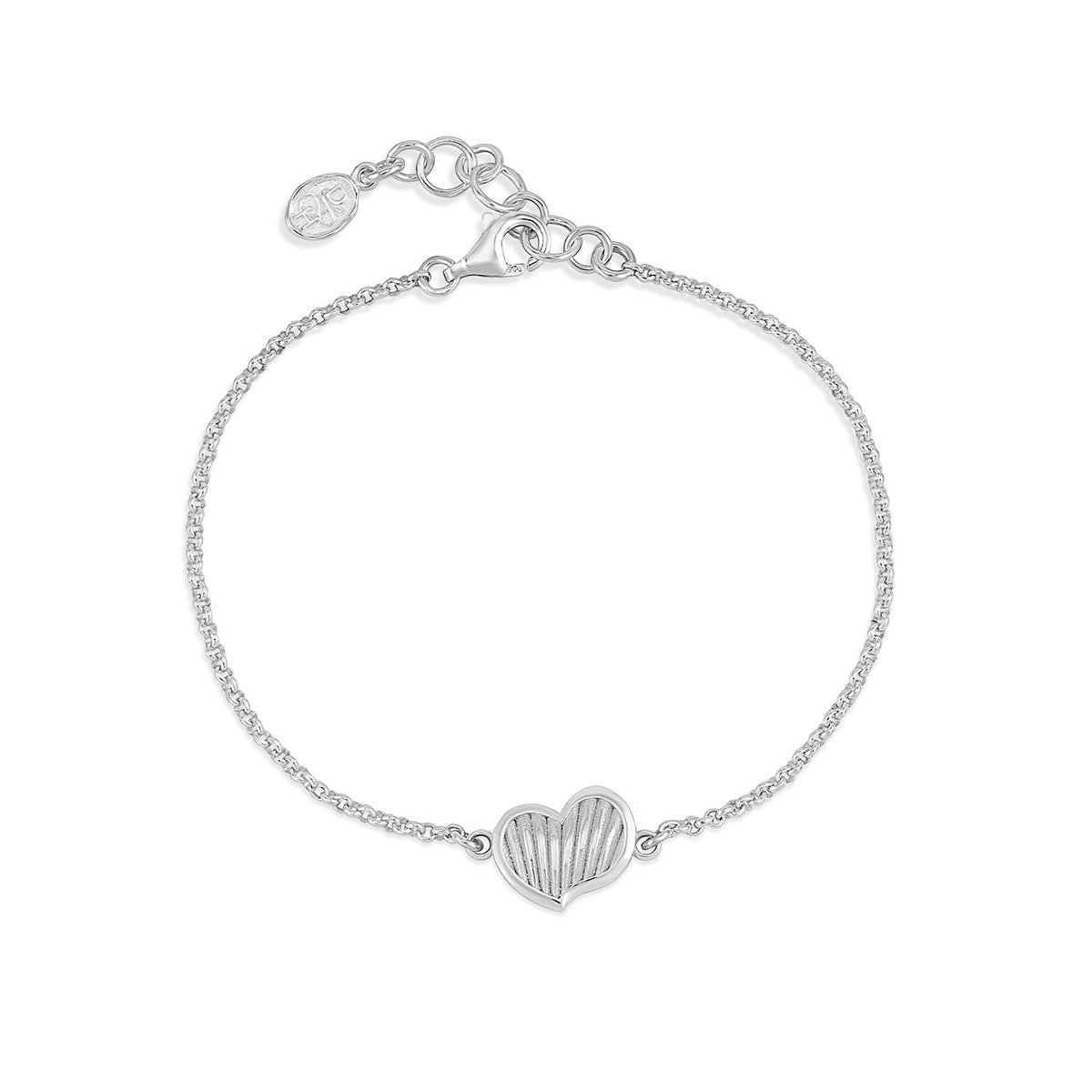 This Humbug Heart Chain Bracelet by Dower & Hall is handcrafted from sterling silver or yellow gold vermeil, featuring a central ribbed heart from the Humbug collection. With a pillowed effect, the heart adds a soft touch to the bracelet, which is adjustable between 6.5 - 7.5 inches for the perfect fit. Pair with the matching Humbug Heart Necklace and Earrings to complete the look.