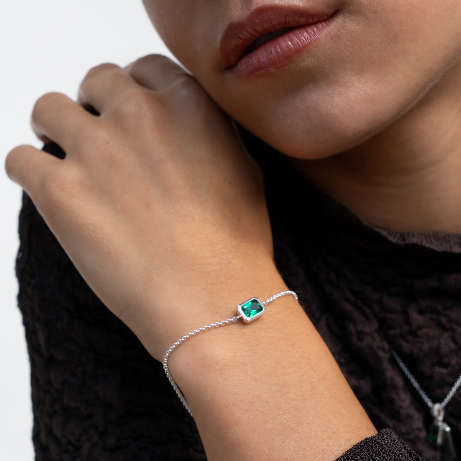 Sterling silver or 18ct yellow gold vermeil. Green garnet (7 x 5mm). Adjustable length: 6.5 - 7.5 inches.