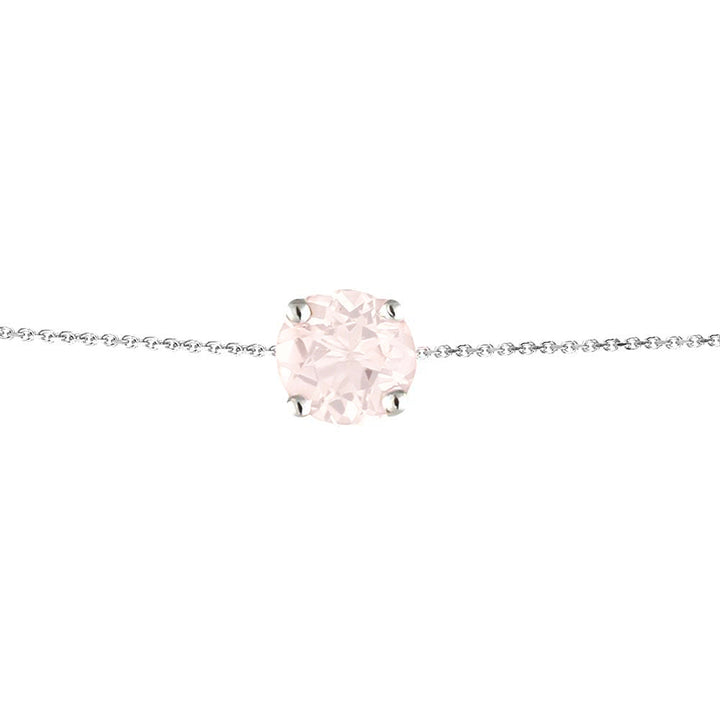 Handcrafted in solid sterling silver featuring round-cut rose quartz gemstones measuring 5mm in diameter, approximately 7 carats total weight. Adjustable sterling silver chain ranging from 6.5 to 7.5 inches with secure clasp. Natural gemstone color variation applies.