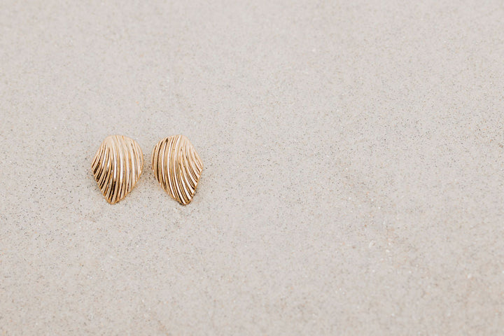 These Gold Shell Stud Earrings by Augustine Jewels celebrate oceanic elegance with detailed gold shell motifs. Compact yet striking, they measure 17x13mm and weigh 5.4 grams total, perfect for beach lovers. Available in gold vermeil on sterling silver, 9ct yellow gold, and 14ct yellow gold.
