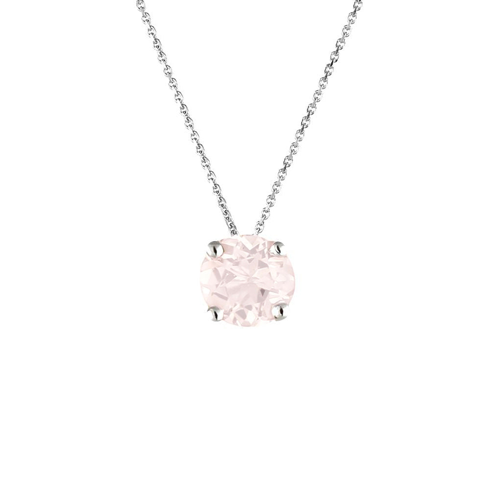 Handcrafted in solid sterling silver featuring a round natural rose quartz gemstone measuring 5mm in diameter. Adjustable sterling silver chain from 16 to 18 inches. Natural gemstone color variations may occur.