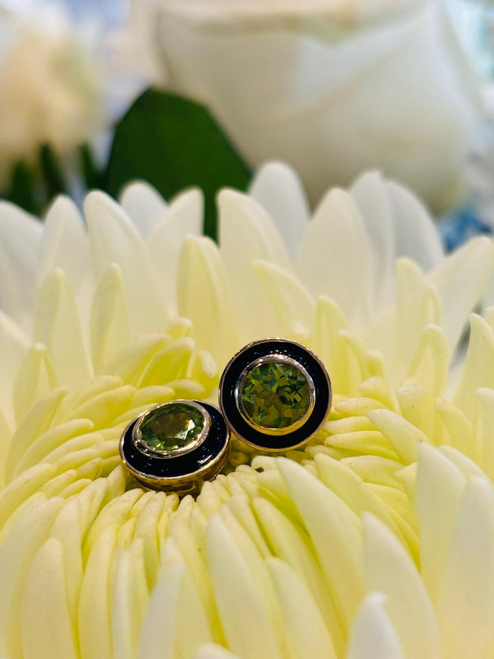 These Peridot and Navy Enamel Stud Earrings by Augustine Jewels are a vibrant celebration of color and light, inspired by the enchanting Northern Lights. The harmonious pairing of a 6mm round Peridot with rich Navy Enamel channels energy, growth, and elegance in a unique design. Available in multiple gold settings, these studs add a sophisticated yet playful pop of color to any jewelry collection. Their boldness is balanced by their refined craftsmanship, making them an ideal accessory for both day and evening wear.