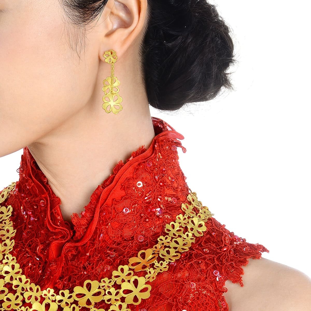 Rooted in a rich legacy of craftsmanship in Hong Kong dating back to 1934, Chow Sang Sang is a distinguished name in the realm of fine jewelry. Vincent Chow, the founder's grandson, leads the charge of igniting imagination in jewelry lovers by blending timeless traditions, contemporary artistry and cutting-edge technology. Every exquisite Chow Sang Sang piece invites you to be a part of a story that stretches across decades, celebrating heritage, design and craftsmanship.Style notes: Luck is around when you wear a bouquet of four leaf clovers on your ears. The intricately carved clovers overlap one another to make the piece three-dimensional. May luck follow you like the movement of these big and small clovers.Price: Please note price may vary due to exchange rate differences or shipping, duties and taxes. Price may also vary with materials choice. Final price is calculated at checkout at the designer's website. Materials: 24k gold. Dimensions: 1.5cm x 4.4cm.