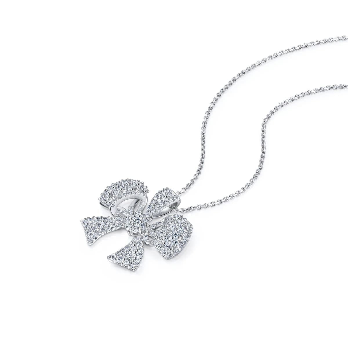 Rooted in a rich legacy of craftsmanship in Hong Kong dating back to 1934, Chow Sang Sang is a distinguished name in the realm of fine jewelry. Vincent Chow, the founder's grandson, leads the charge of igniting imagination in jewelry lovers by blending timeless traditions, contemporary artistry and cutting-edge technology. Every exquisite Chow Sang Sang piece invites you to be a part of a story that stretches across decades, celebrating heritage, design and craftsmanship.Style notes: This exquisite pendant features a graceful bowtie design adorned with brilliant diamonds, creating a dazzling and eye-catching piece.Price: Please note price may vary due to exchange rate differences or shipping, duties and taxes. Price may also vary with materials choice. Final price is calculated at checkout at the designer's website. Materials: 18k white gold with 0.97ctw round brilliant diamonds.Dimensions: 2.1 cm x 2.0 cm.