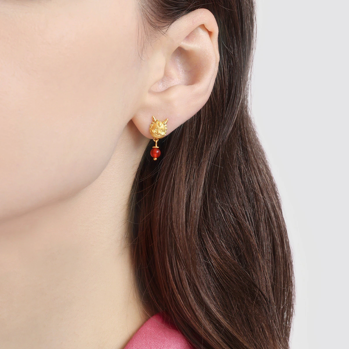 Rooted in a rich legacy of craftsmanship in Hong Kong dating back to 1934, Chow Sang Sang is a distinguished name in the realm of fine jewelry. Vincent Chow, the founder's grandson, leads the charge of igniting imagination in jewelry lovers by blending timeless traditions, contemporary artistry and cutting-edge technology. Every exquisite Chow Sang Sang piece invites you to be a part of a story that stretches across decades, celebrating heritage, design and craftsmanship.Style notes: This gold earring showcases a three-dimensional design of a baby dragon, crafted using mold casting technique to create its exquisite appearance. The addition of natural red agate beads enhances its elegance, symbolizing wealth and luck.Price: Please note price may vary due to exchange rate differences or shipping, duties and taxes. Price may also vary with materials choice. Final price is calculated at checkout at the designer's website. Materials: 24k gold. Dimensions: 0.7 cm X 1.5 cm.
