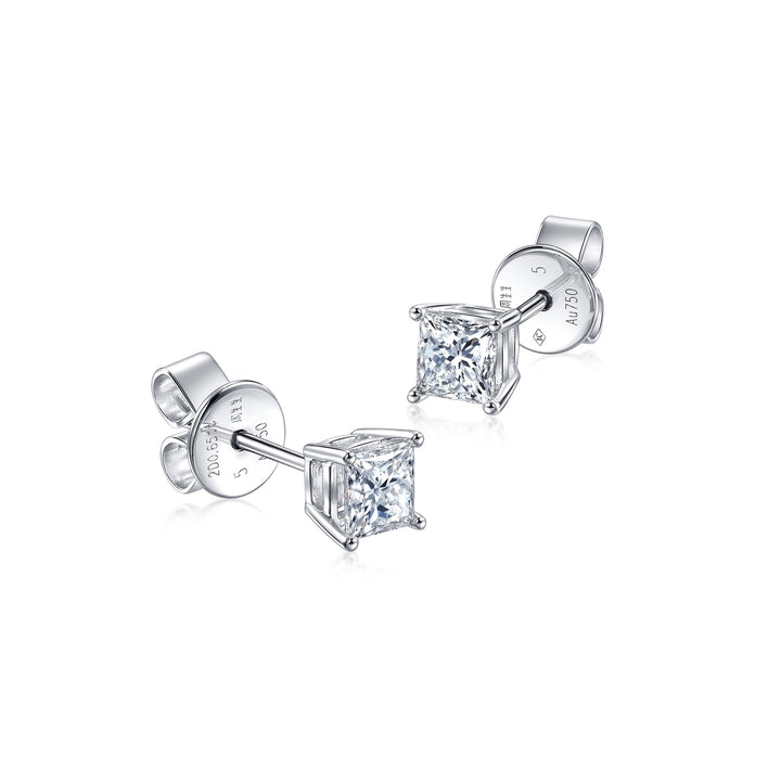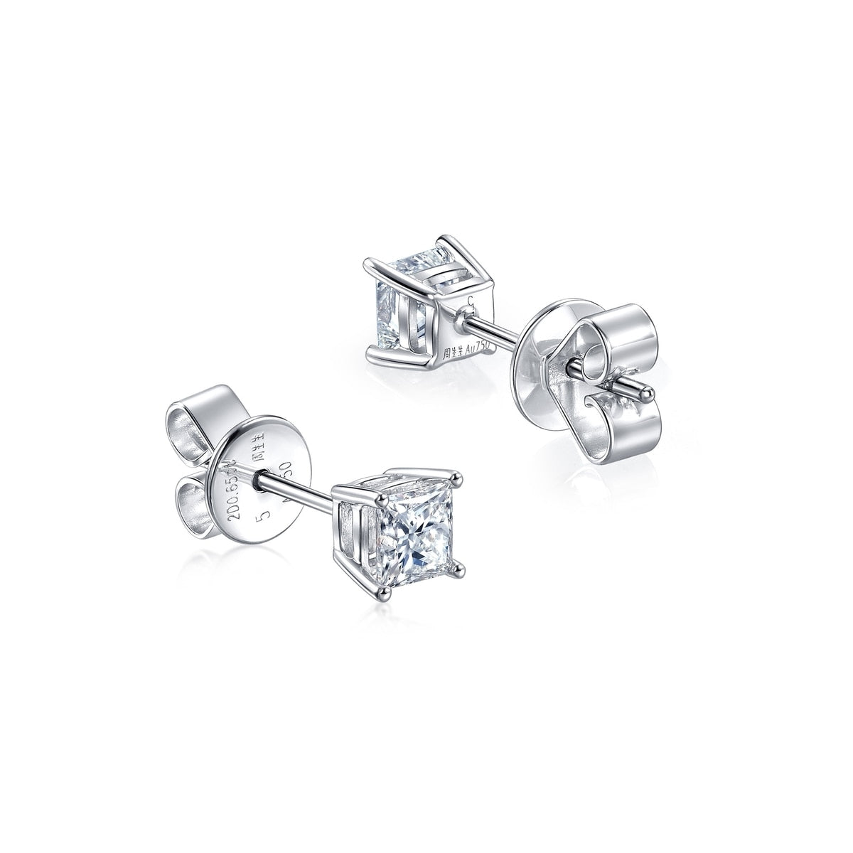 Handcrafted in 18K White Gold with 0.32ct VS1 Princess Cut (Square Modified Brilliant) Diamonds, Color Grade G.