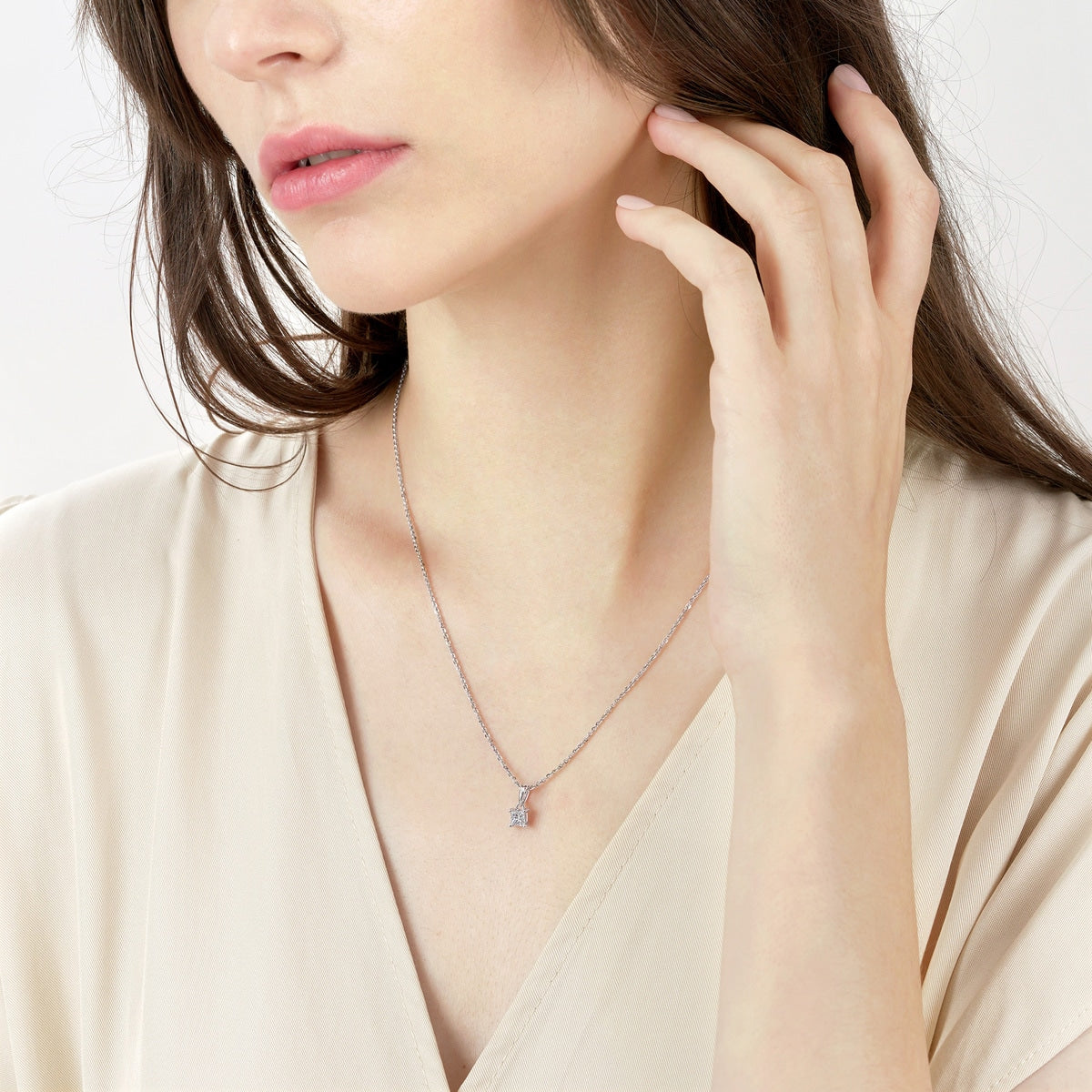 This 18K White Gold Diamond Pendant by Chow Sang Sang is a striking symbol of sophistication. Featuring a dazzling Princess Cut diamond, this pendant is a testament to fine craftsmanship and elegance. Its sleek, modern design makes it a perfect piece for both everyday wear and special occasions.