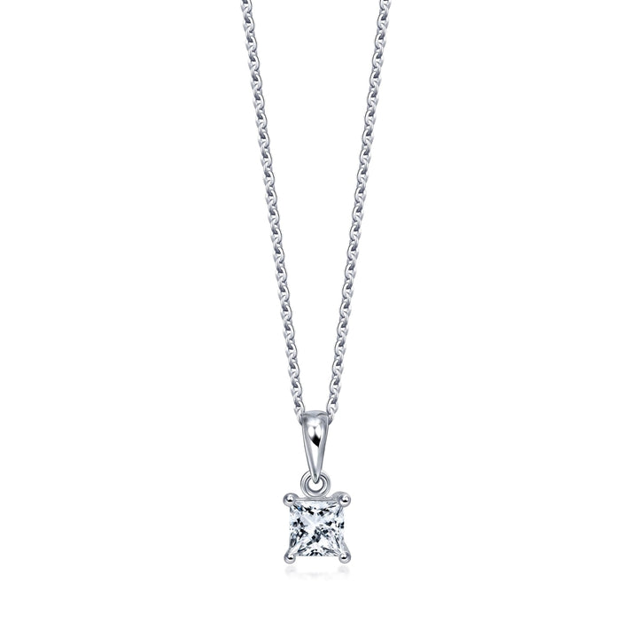 Handcrafted in 18K White Gold with a 0.50ct VVS1 Princess Cut (Square Modified Brilliant) Diamond, Color Grade F.