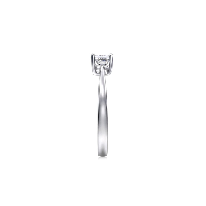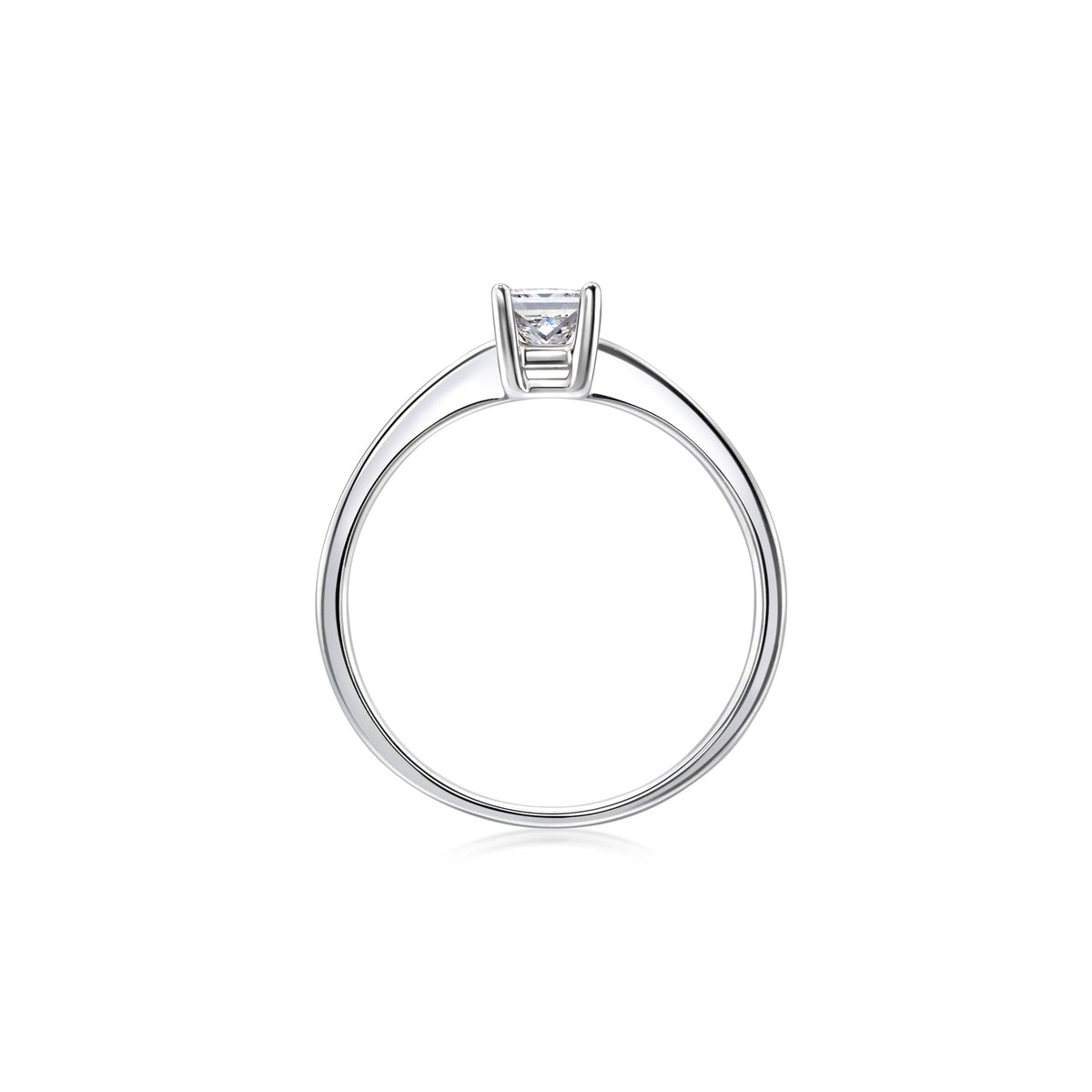 Handcrafted in 18K White Gold with a 0.35ct VS1 Princess Cut (Square Modified Brilliant) Diamond, Color Grade F.