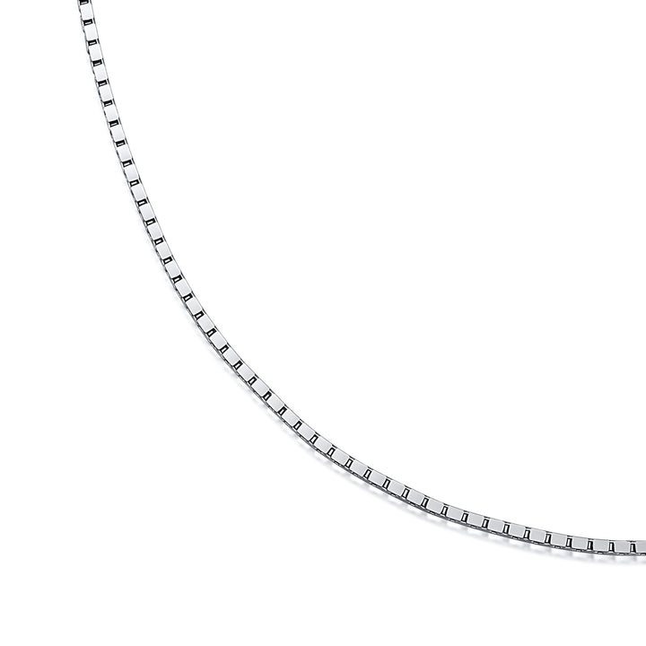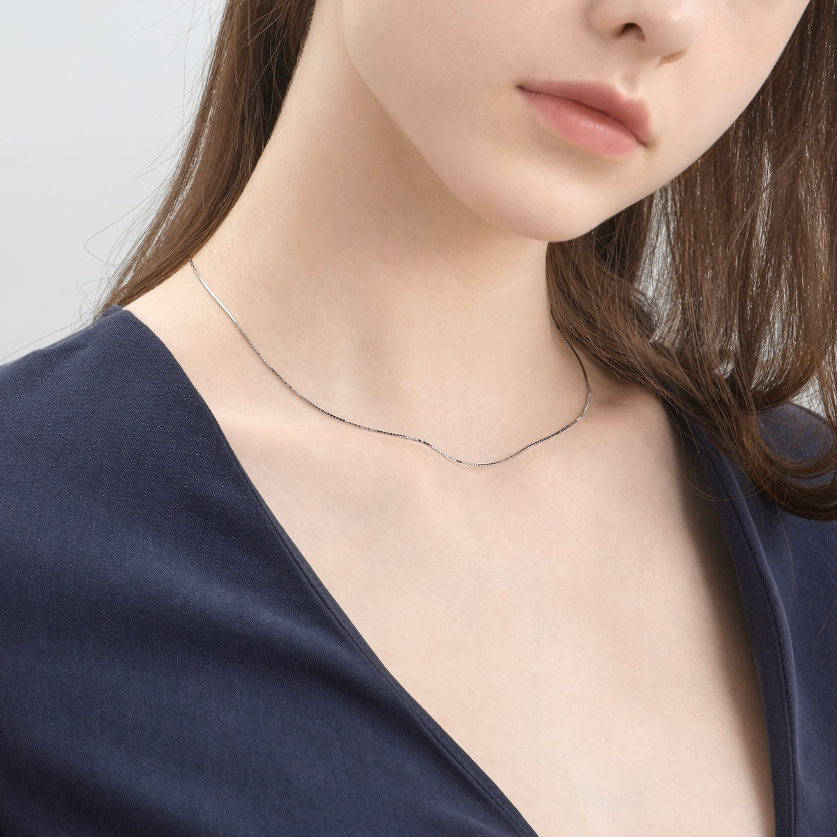 This 18K White Gold Necklace by Chow Sang Sang features a sleek box chain design that is simple yet elegant. Perfect for any occasion, this versatile piece can be worn alone for a minimalistic look or paired with a pendant to create a unique statement.