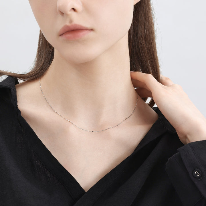 This 18K White Gold Necklace by Chow Sang Sang offers minimalist elegance with its subtle, refined design. Its simplicity makes it a timeless piece that can be worn alone or layered for added sophistication.
