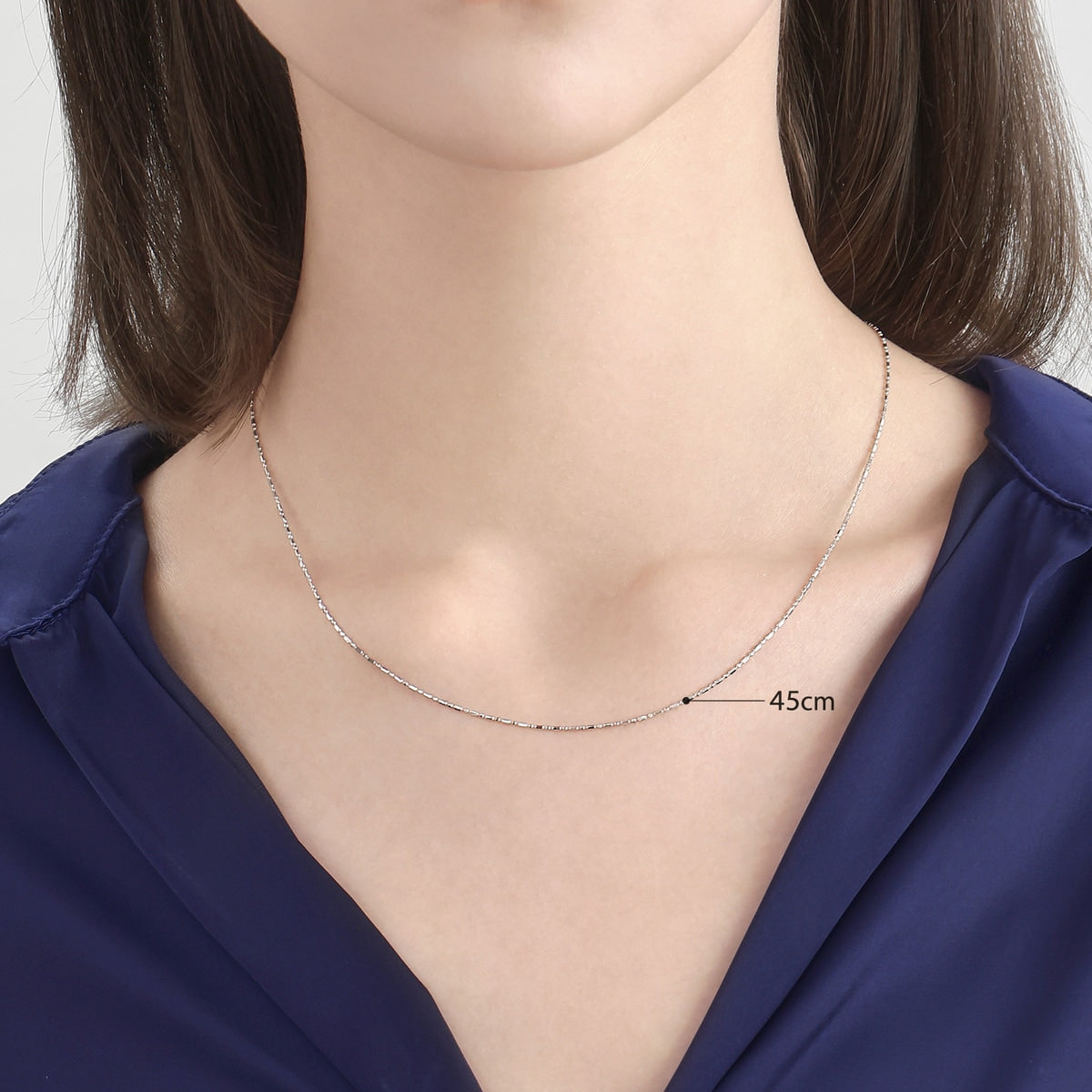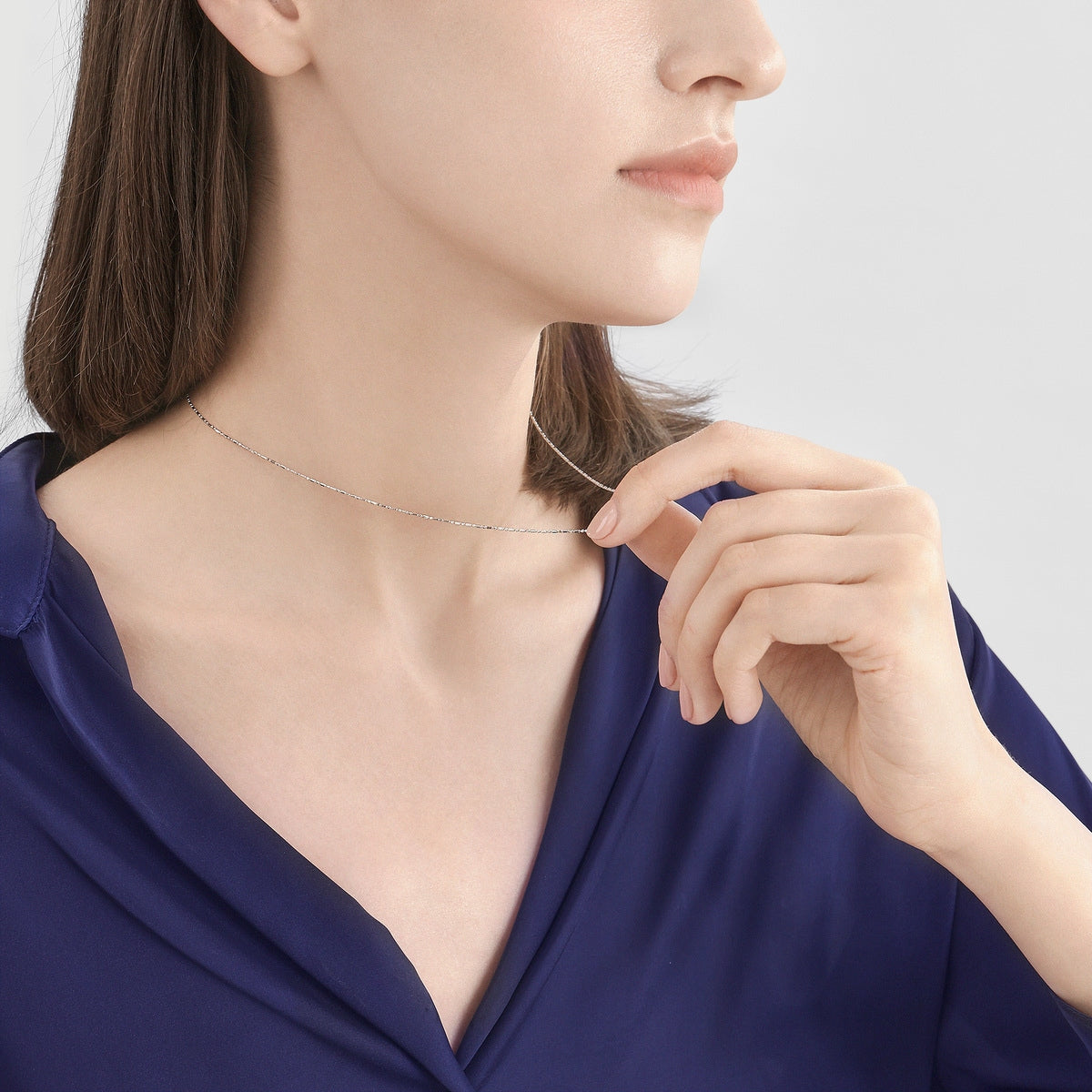 This 18K White Gold Necklace by Chow Sang Sang embodies luxury and refinement in its design. Simple yet sophisticated, it’s perfect for both casual and formal occasions, either worn alone or with a pendant for added flair.