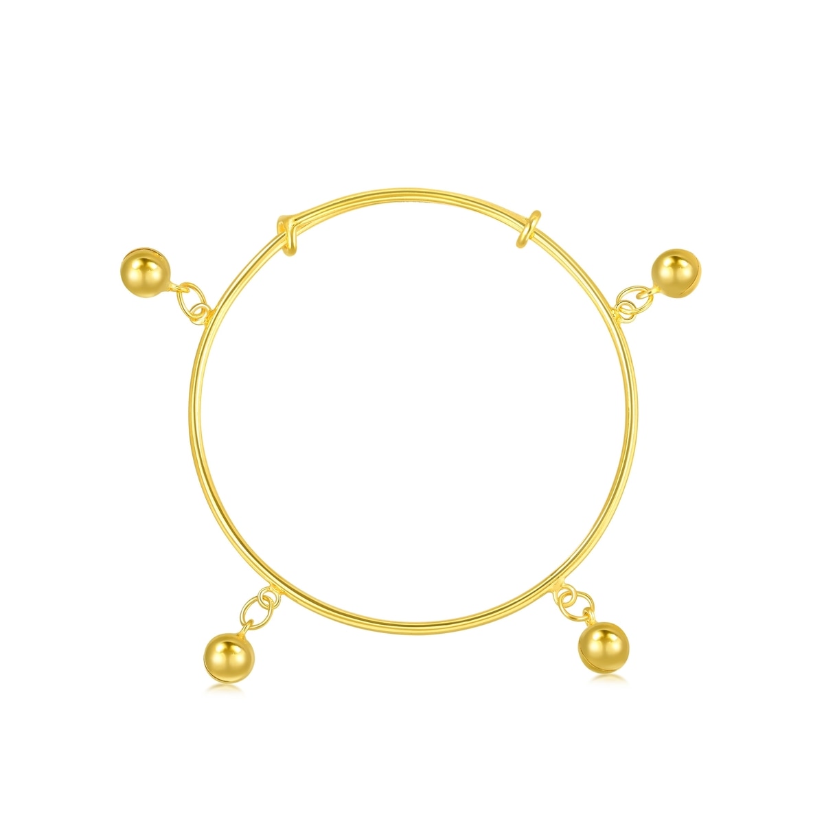 The 'New Born' 999.9 Gold Bangle by Chow Sang Sang is a delicate and adjustable baby bangle adorned with mini bells, making it the perfect gift to celebrate the birth of a cheerful and bubbly baby. Its adjustable design ensures a comfortable fit, with a diameter ranging from approximately 41mm to 50mm.