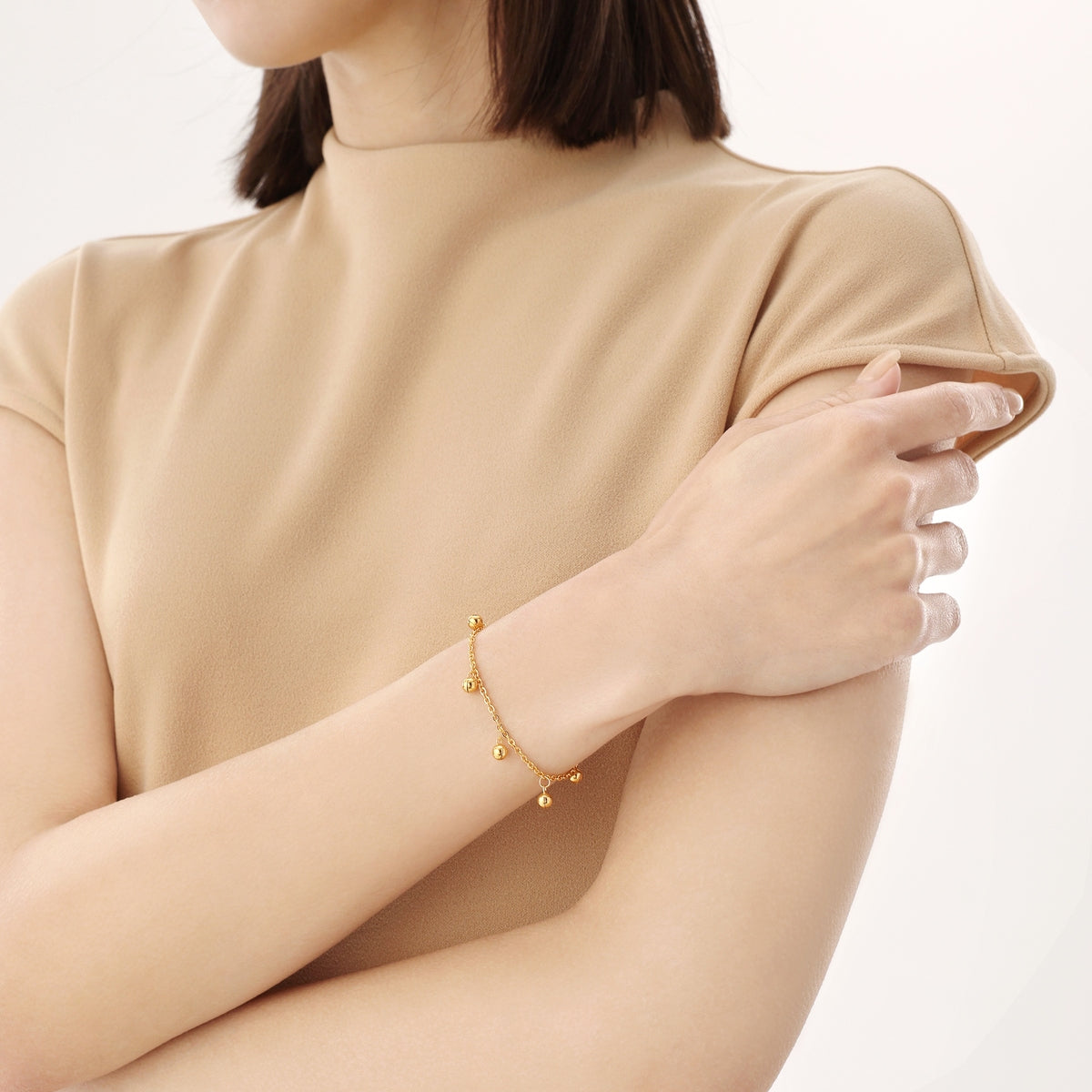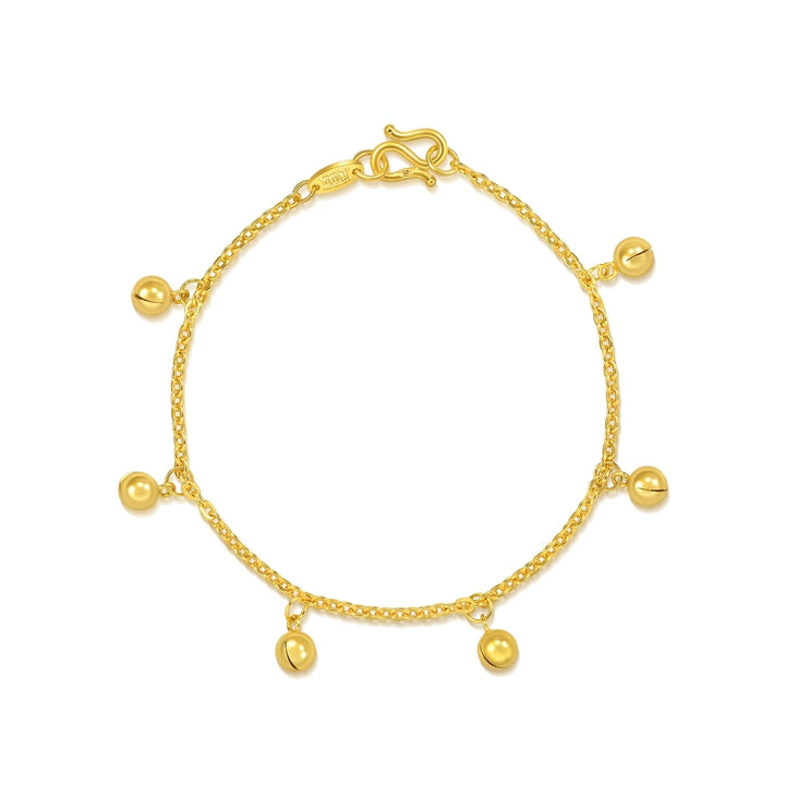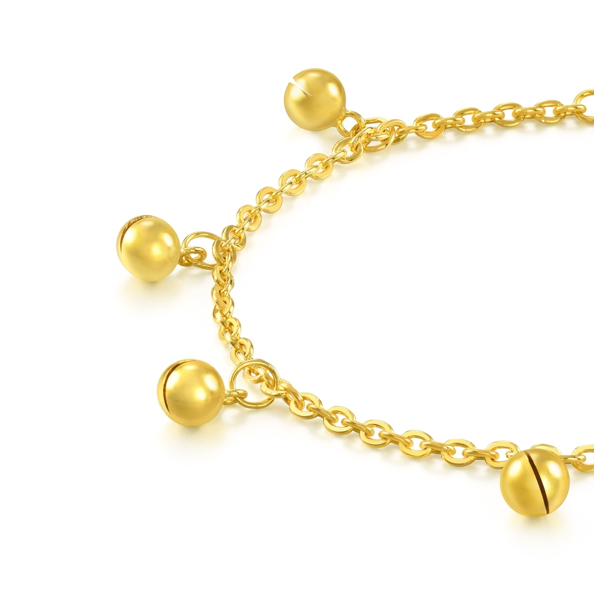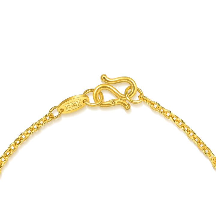 This 999.9 Gold Bracelet by Chow Sang Sang features a bell-inspired design that is both simple and adorable, making it a must-have addition to any jewelry collection. Its unique charm allows for versatile styling, whether layered or worn alone.