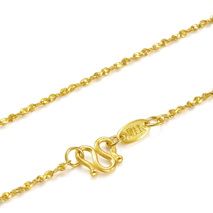 This 999.9 Gold Anchor Chain Necklace by Chow Sang Sang features a timeless design that exemplifies versatility and style. Perfect for any occasion, it can be worn solo for understated elegance or paired with a pendant for a more personalized touch.