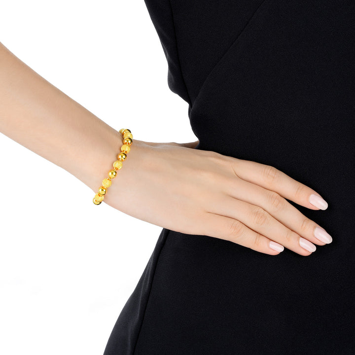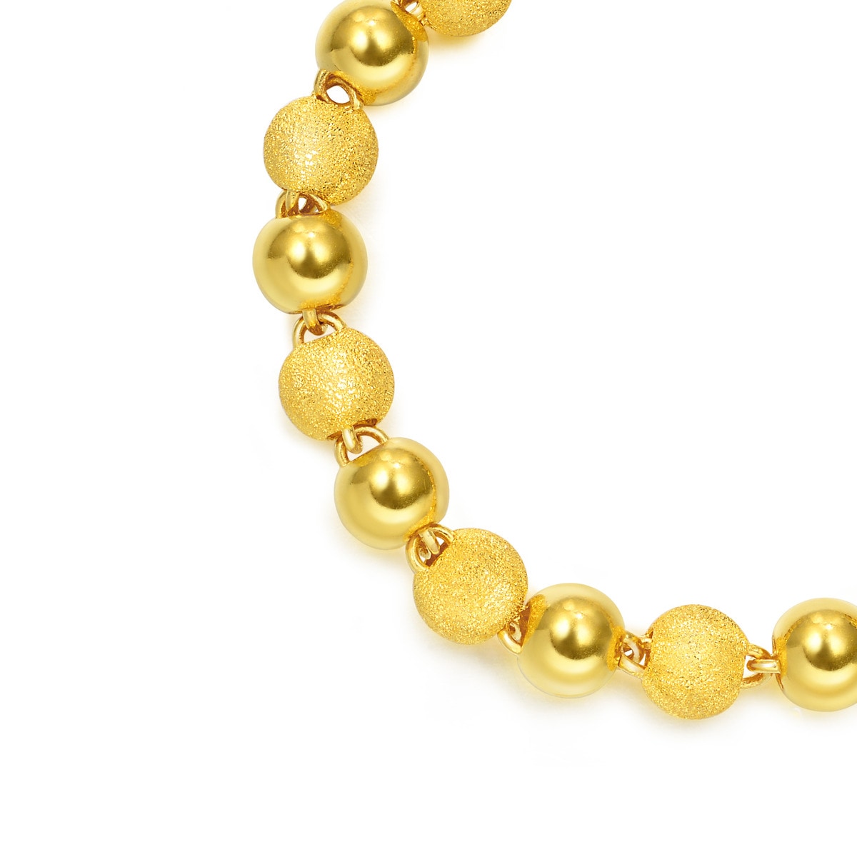 This 999.9 Gold Bracelet by Chow Sang Sang features exquisite bead texture, adding elegance and sophistication to any ensemble. Whether layered with other pieces or worn solo, it serves as a statement of refined style and luxury.