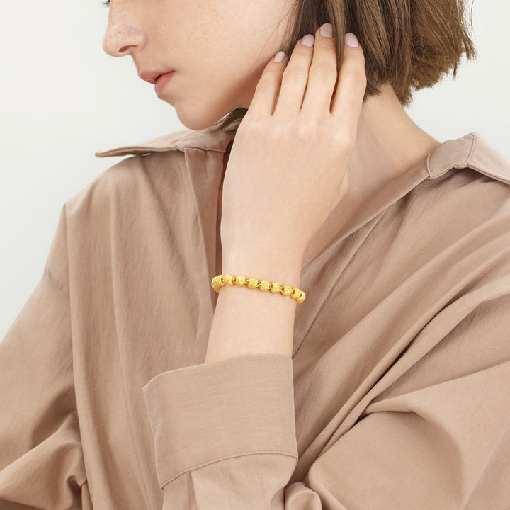 This 999.9 Gold Bracelet by Chow Sang Sang showcases exquisite craftsmanship, making it an elegant addition to any jewelry collection. Its refined design is perfect for layering or wearing alone, allowing you to make a stylish statement effortlessly.