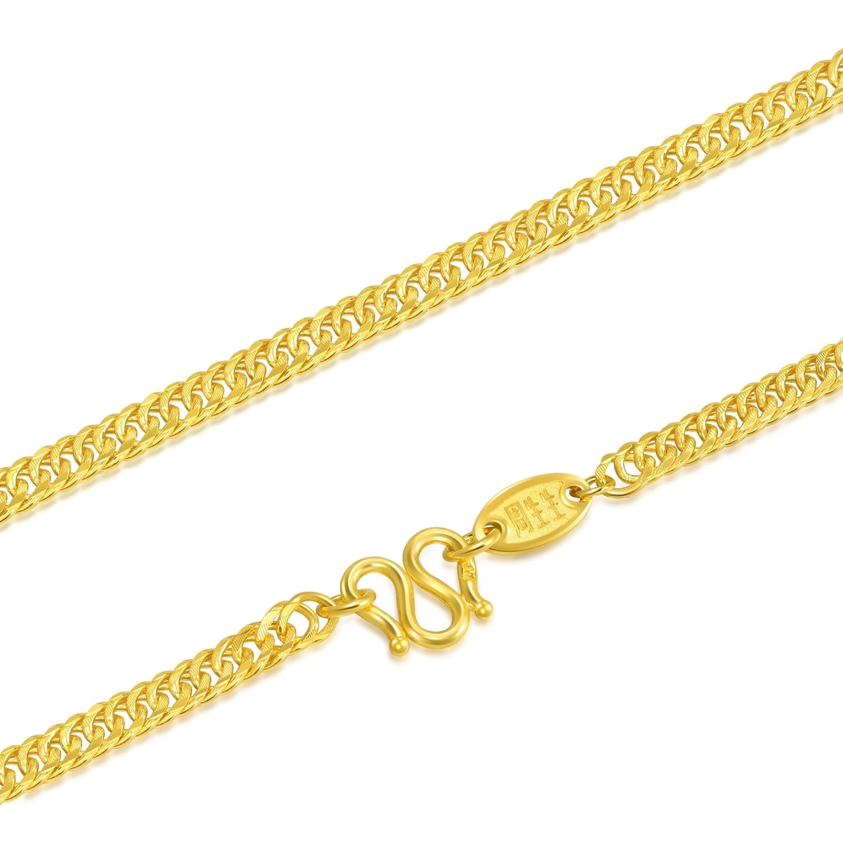 This 999.9 Gold Necklace by Chow Sang Sang showcases versatility and simplicity. Ideal for wearing solo or styled with an expressive pendant, it adds a touch of fashionable flair to any look, making it a must-have accessory.