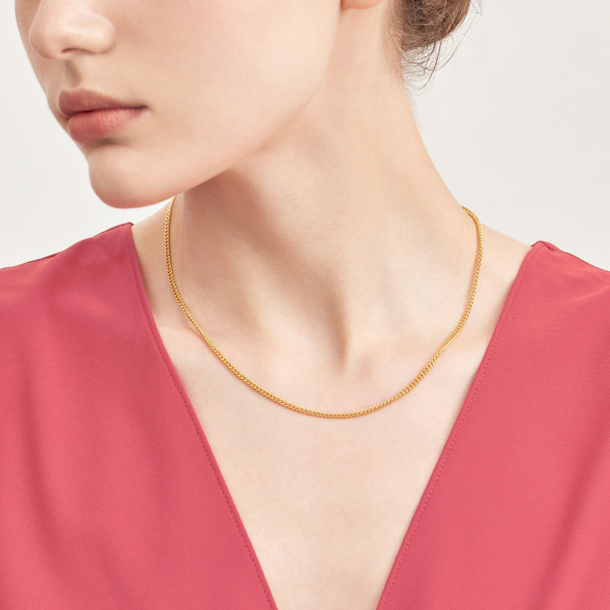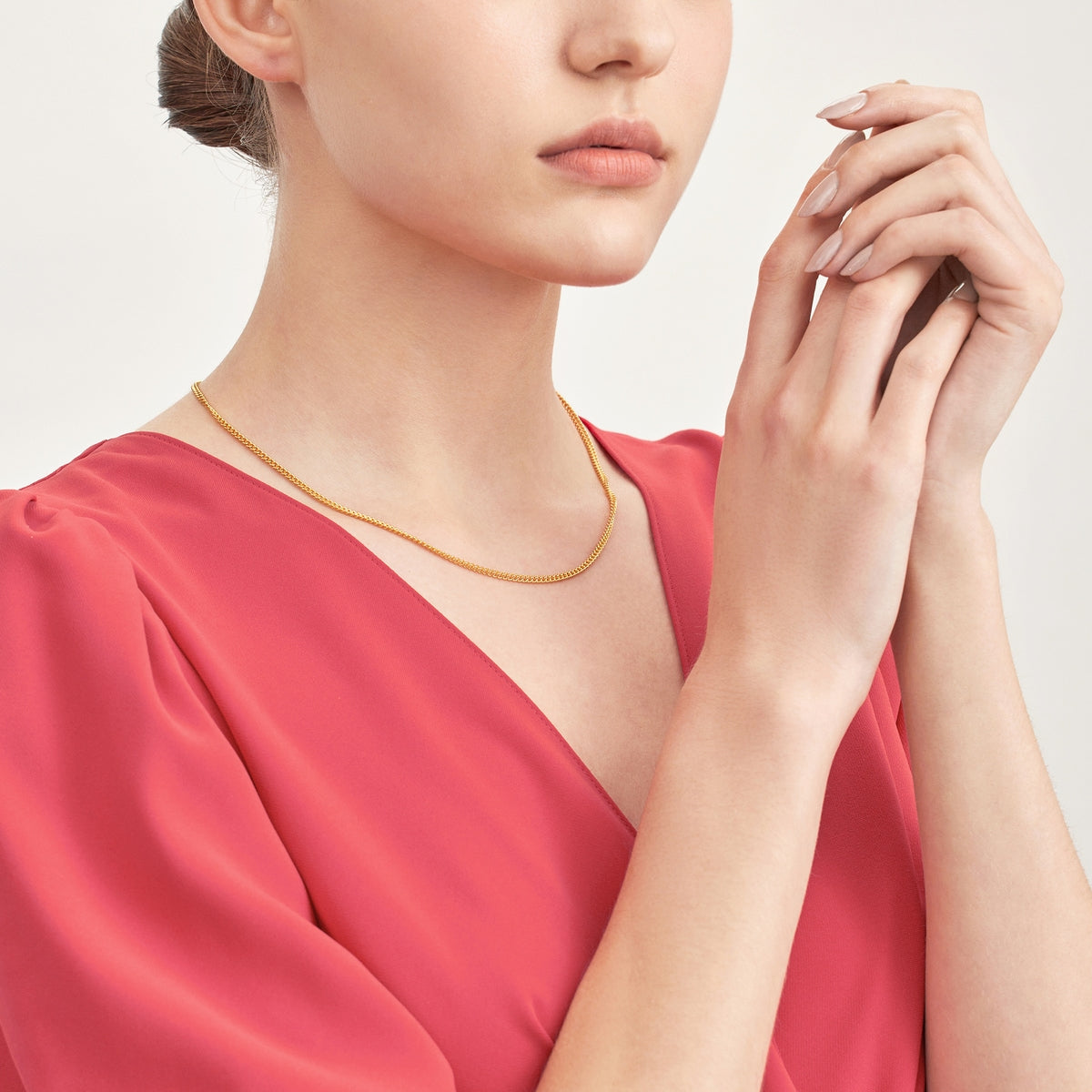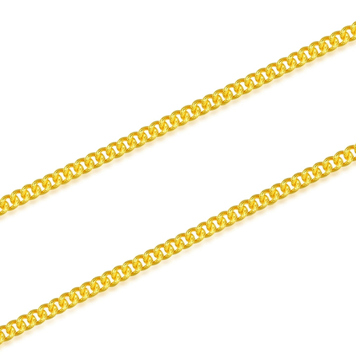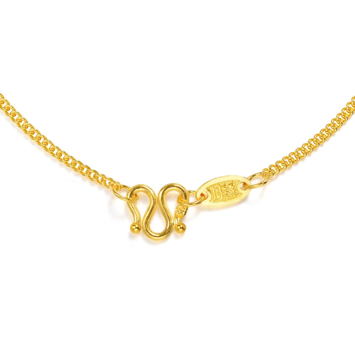 This 999.9 Gold Necklace by Chow Sang Sang is a versatile piece that embodies simplicity, making it a fashionable addition when worn solo or paired with an expressive pendant. Its elegant design ensures it complements any outfit effortlessly.