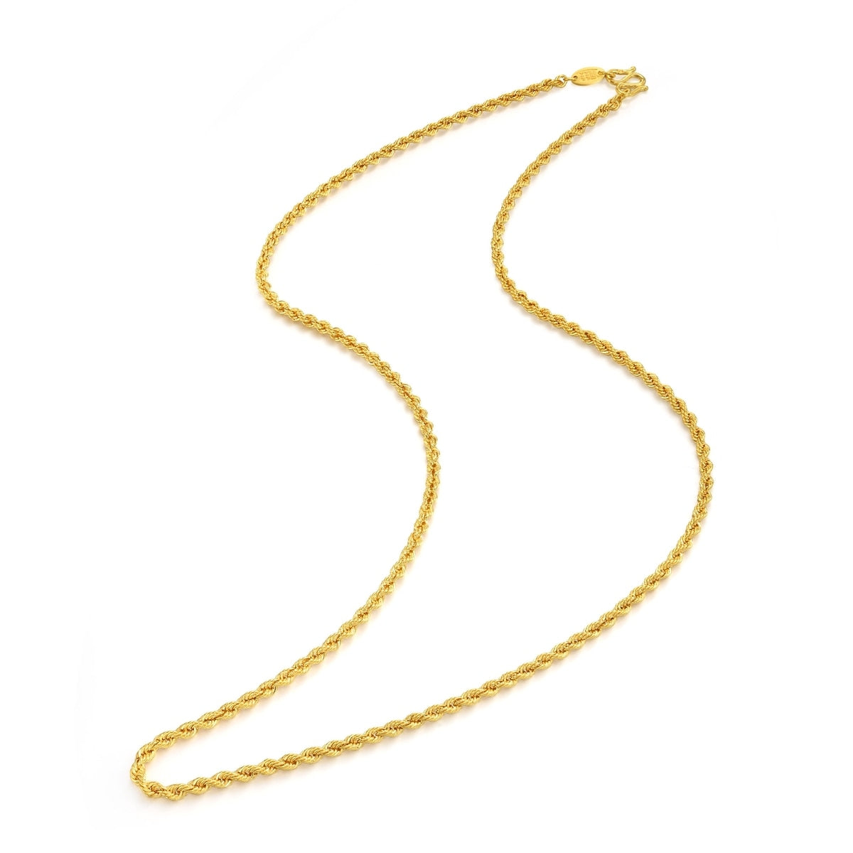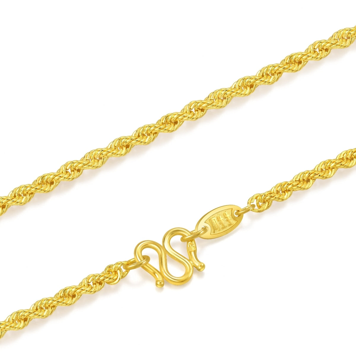 This 999.9 Gold Necklace by Chow Sang Sang boasts a luxurious design, perfect for adding a touch of elegance to any ensemble. Its weight and length make it a statement piece that can be worn solo for a bold look or layered for added depth.