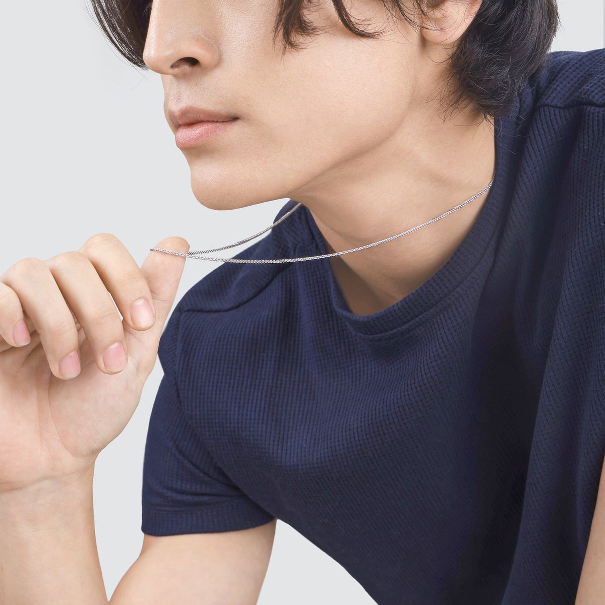 This 18K White Gold Necklace by Chow Sang Sang is a timeless addition to any jewelry collection. Its simple yet sophisticated design allows it to shine on its own or complement other pieces, making it versatile and chic.