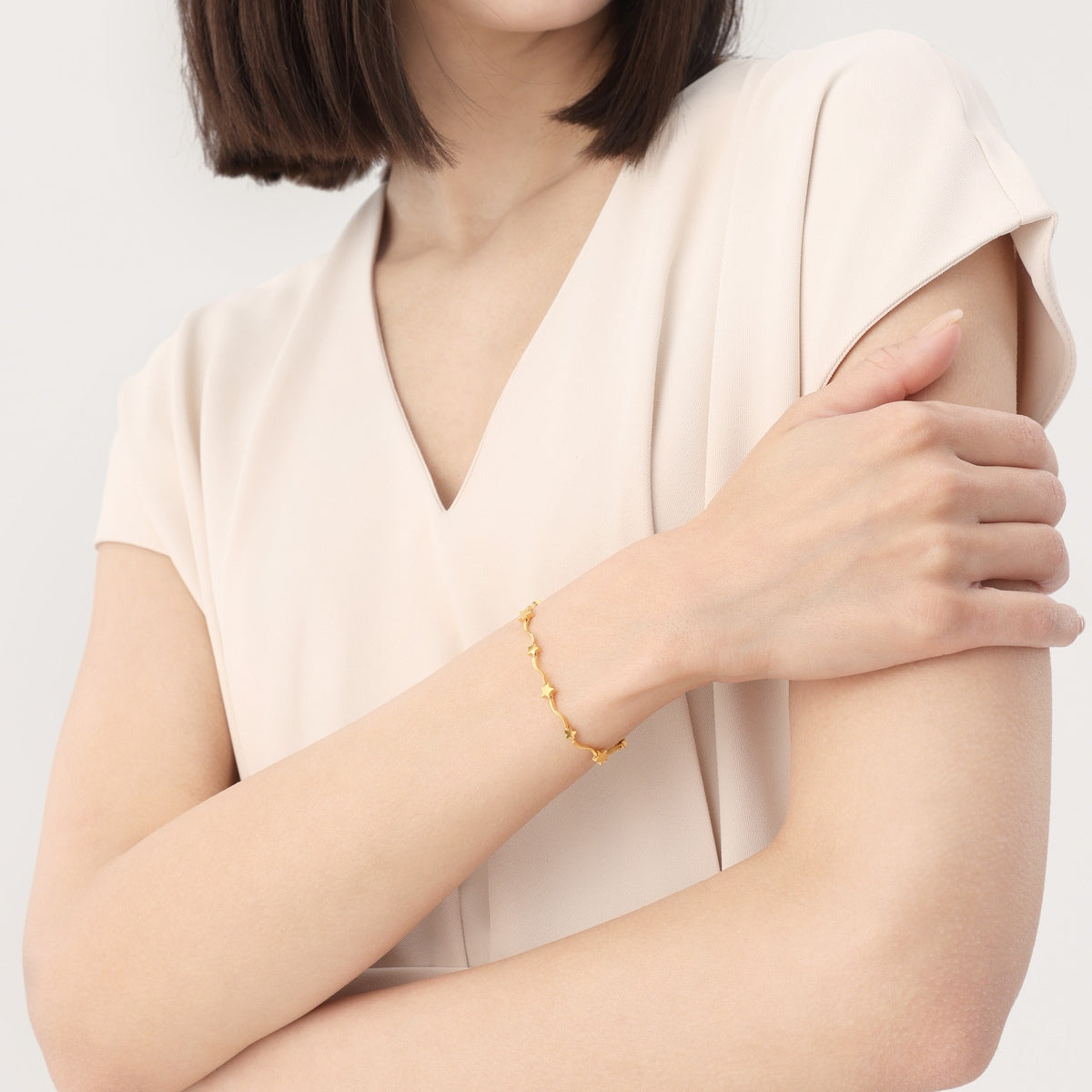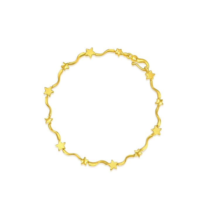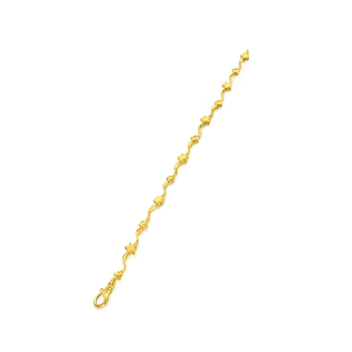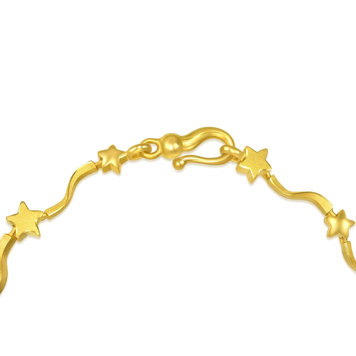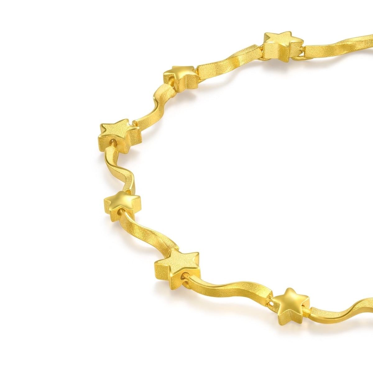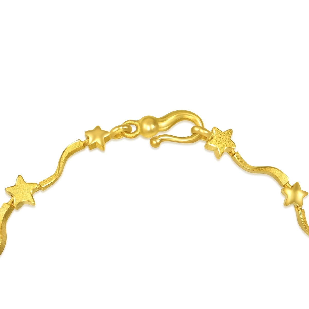 This 999.9 Gold Bracelet by Chow Sang Sang showcases a fine gold design adorned with stars and resplendent flourishes, creating a celestial-inspired look that adds a whimsical charm to your everyday fashion.