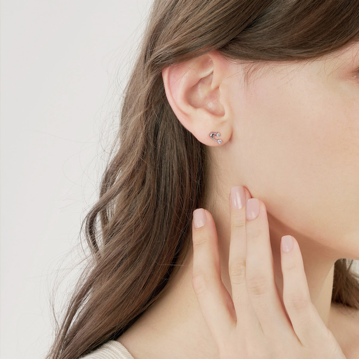 Handcrafted in 18K white gold, featuring 0.09ct round brilliant diamonds, color grade G-H, clarity VS1-VS2, and weighing approximately 0.037 tael (~1.385g).