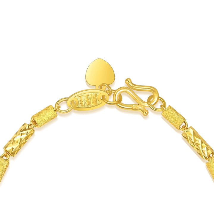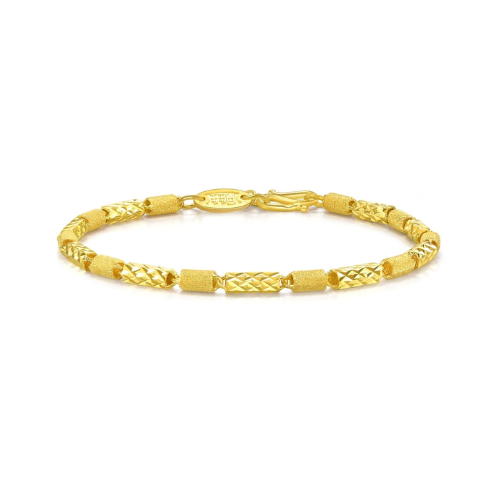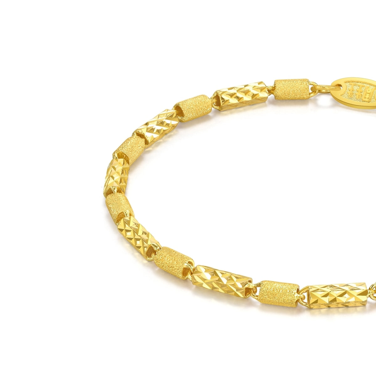 This 999.9 Gold Bracelet by Chow Sang Sang features a sleek and understated design, ideal for both casual and formal occasions. Its classic aesthetic ensures it will be a timeless addition to any jewelry collection.